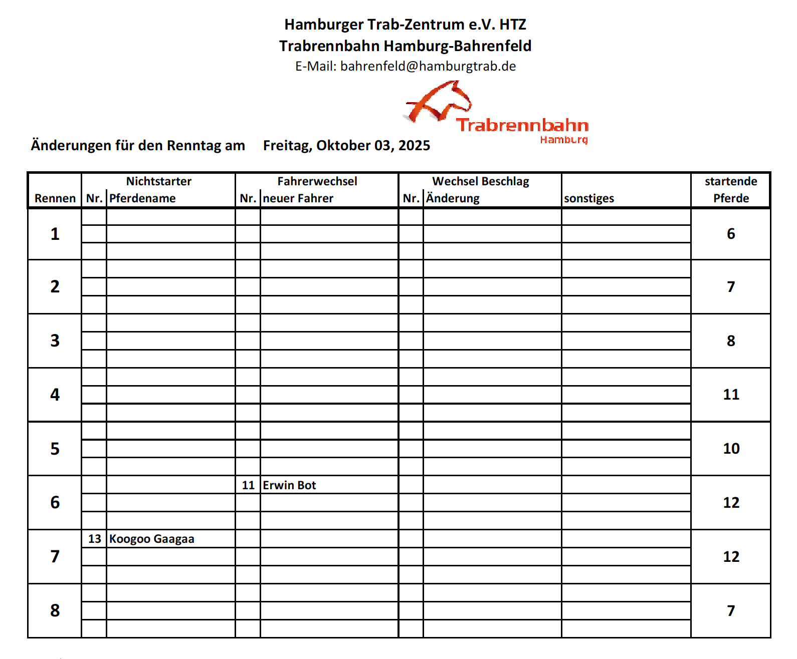 Nur ein Punkt: Für den Alsterpreis wurden die Startnummern nach Gewinnsumme vergeben - bei so einem Highlight doch sehr unüblich. Für uns war das eine unerwartete Überraschung … bitte künftig wieder losen, dann passt’s rundum.