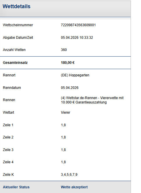 Heute startet in Mülheim die grüne Saison 2026 in Deutschland. Ich werde somit dann wieder regelmäßig für die Deutschen Galopprennen Privat TGs einstellen. Los geht mit der VW heute. Die Wette ist online. Allen HuB und einen schönen Sonntag. Gruß Lesanto |