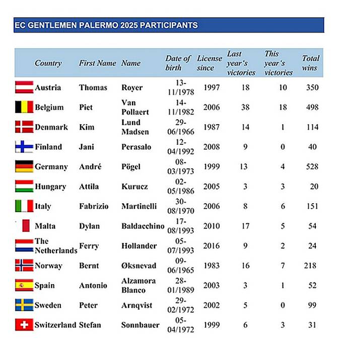 (hl) Kaum ist die Breeders Crown vorbei, steht ein weiteres wichtiges Trabrenn-Ereignis an. Diesmal allerdings nicht in Berlin, sondern in Palermo: die Europameisterschaft der Amateurfahrer. Und obwohl zwischen der deutschen Hauptstadt und der sizilianischen Metropole rund 1.600 Kilometer Luftlinie liegen, werden alle Berliner Trabrennfans von ihrem Interesse her hautnah am Geschehen dran sein. Denn es geht kein Geringerer als André Pögel (52) für Deutschand an den Start. Die vier Wertungsläufe der „European Championship For Gentlemen Drivers“ finden am kommenden Samstag (25. Oktober) ab ca. 15 Uhr auf dem Ippodromo La Favorita statt und aufgrund seiner Erfahrung dürfte der mehrmalige Berliner Amateurmeister, der bisher 530 Rennen und 2019 auch die bundesweite Championatswertung gewann, sicherlich chancenreich an den Start gehen. Die Daumen sind jedenfalls gedrückt! Die Liste seiner Gegner finden Sie untenstehend und das umfangreiche Unterhaltungsprogramm, das der Veranstalter seinen aus 13 Nationen anreisenden internationalen Sportlergästen bietet, hier.
