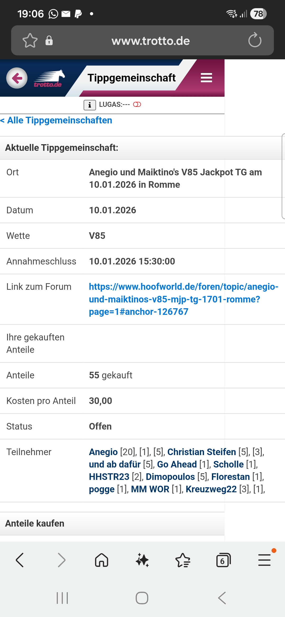 Anteilshöhe 30 Euro Annahmeschluss am 10.01 um 15:30 Uhr.