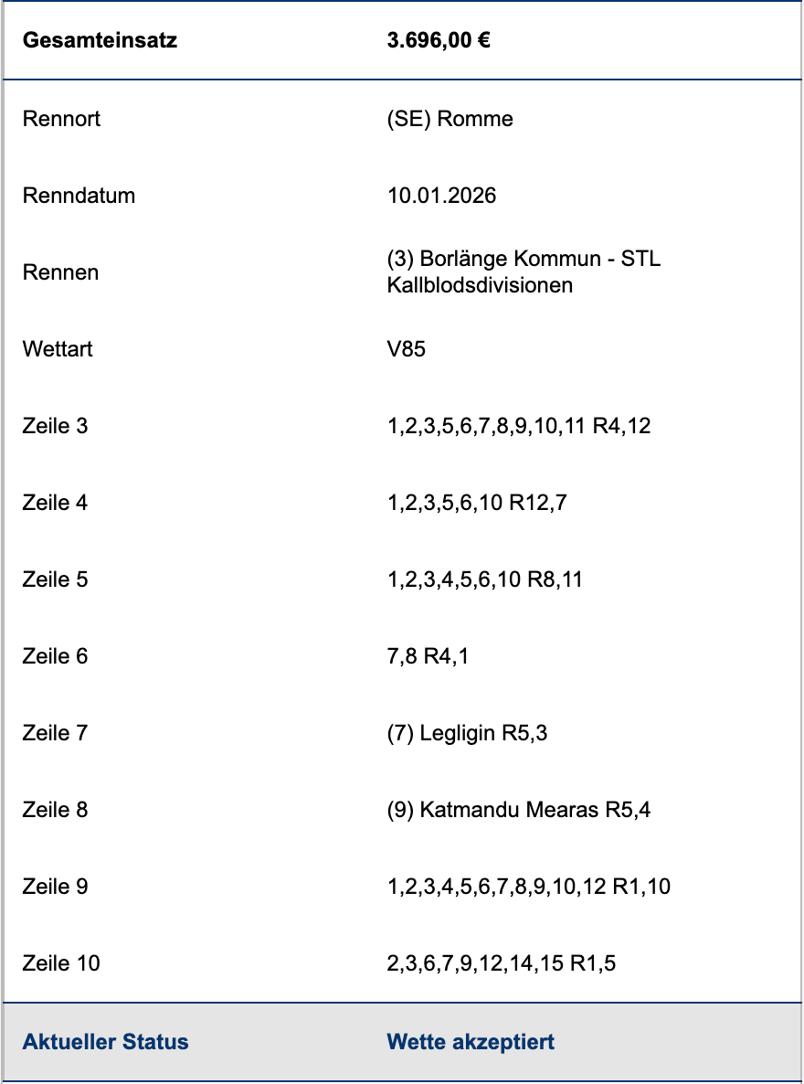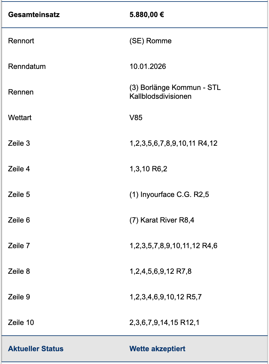 O.K., Danke ! Bin offenbar auch der Einzige der mit dem "Toto Pro" Kram nicht klar kommt (oder der Einzige der es zugibt...) |