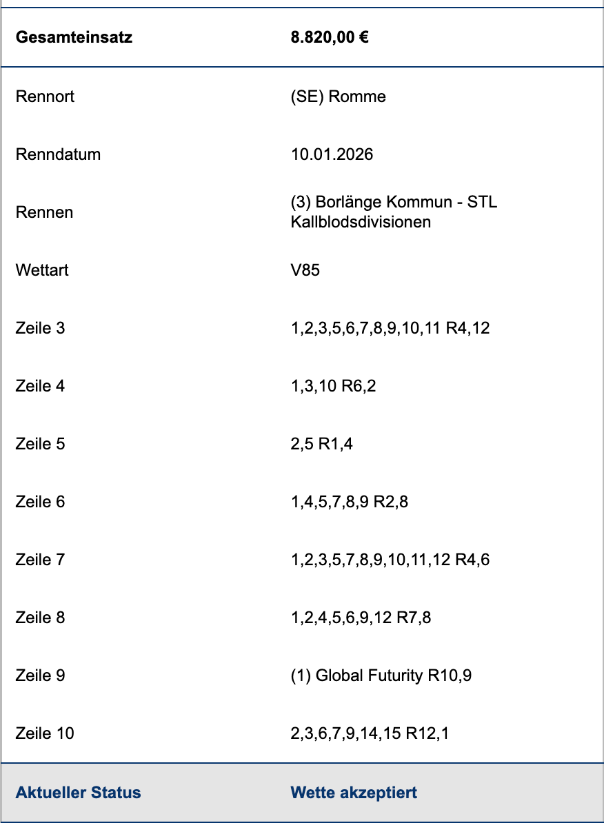 Trotto wird die Scheine ja gleich hier einstellen. |