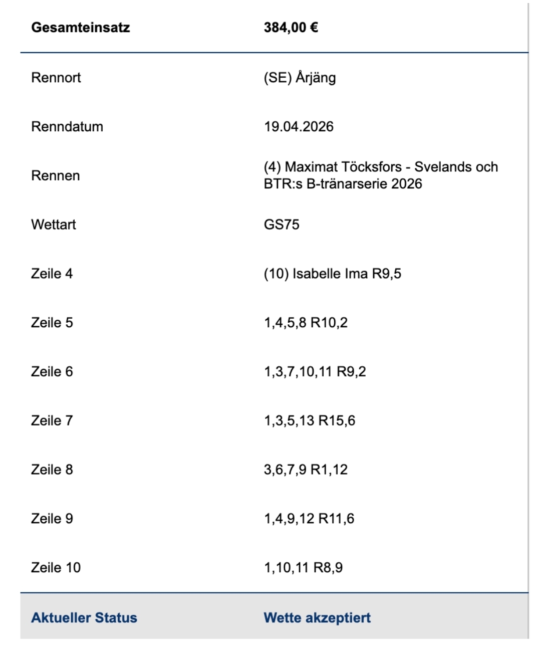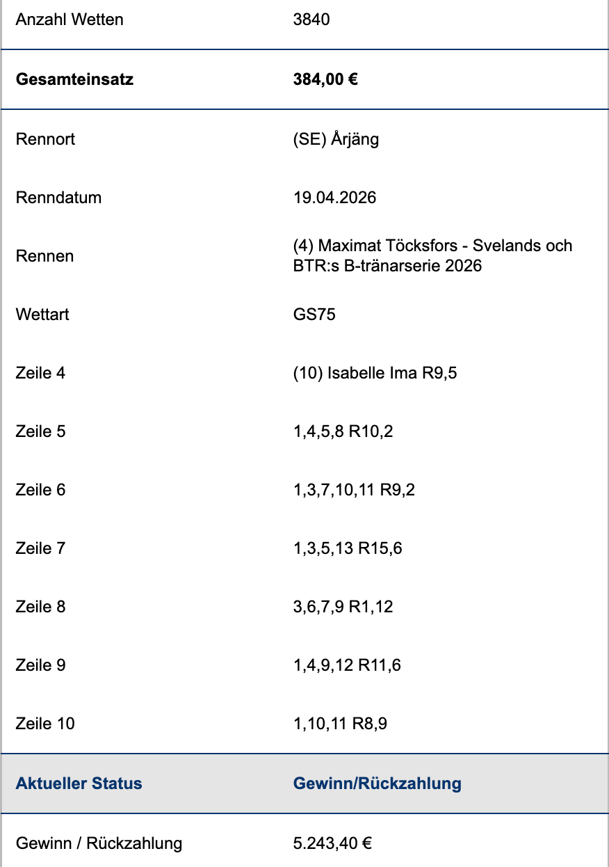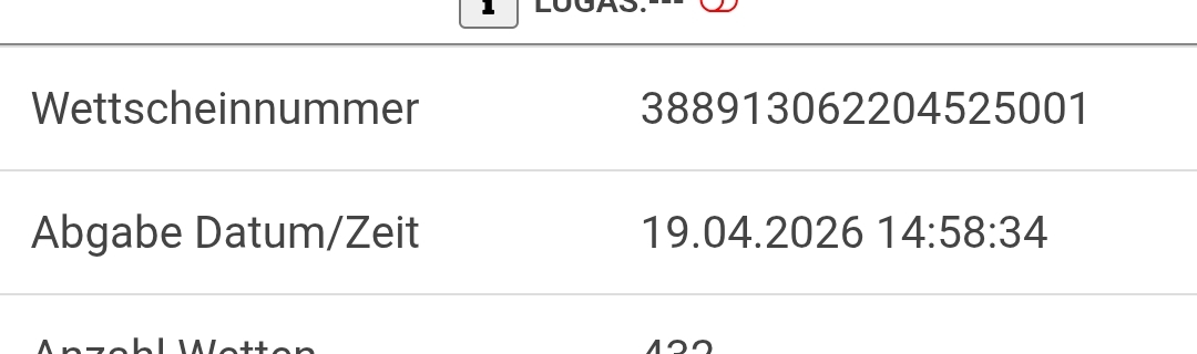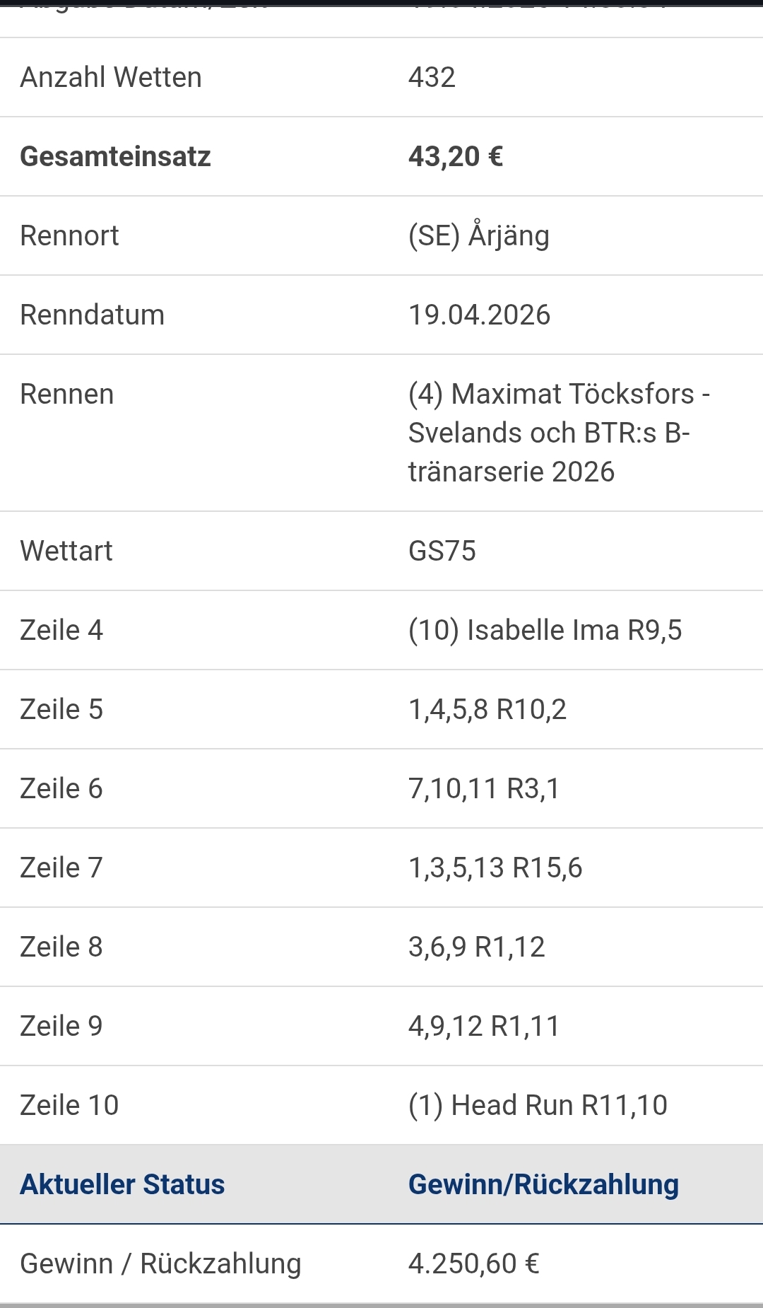 Naja , weil ich nicht wusste bis kurz vor Start, ob das klappt mit trotto und der TG , noch schnell einen eigenen abgegeben Hätte mir aber trotzdem lieber die 1 im vorletzten gewünscht Uhrzeit steht ja drauf