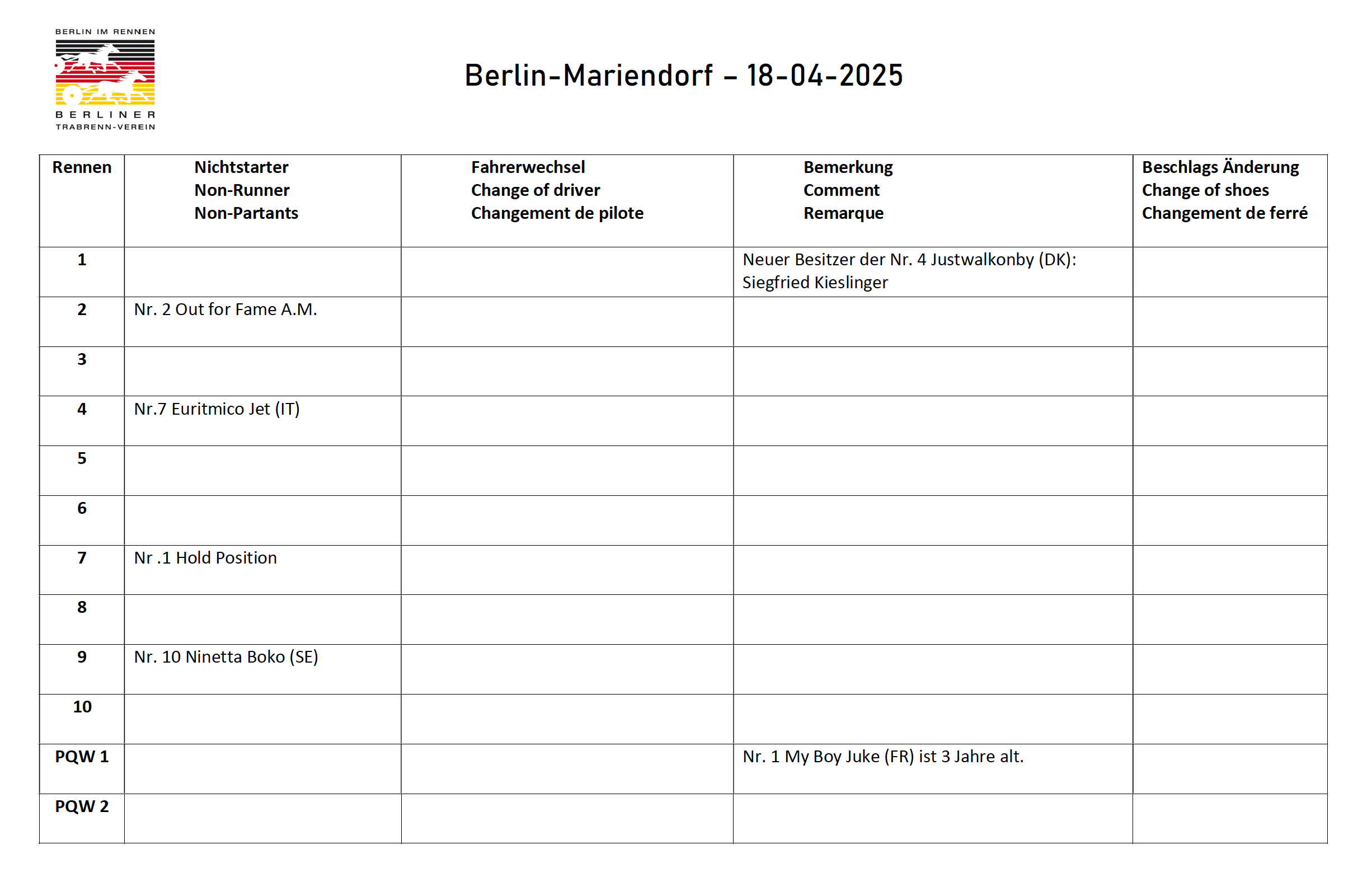Vorschau Berlin-Mariendorf, Freitag 18.04.2025