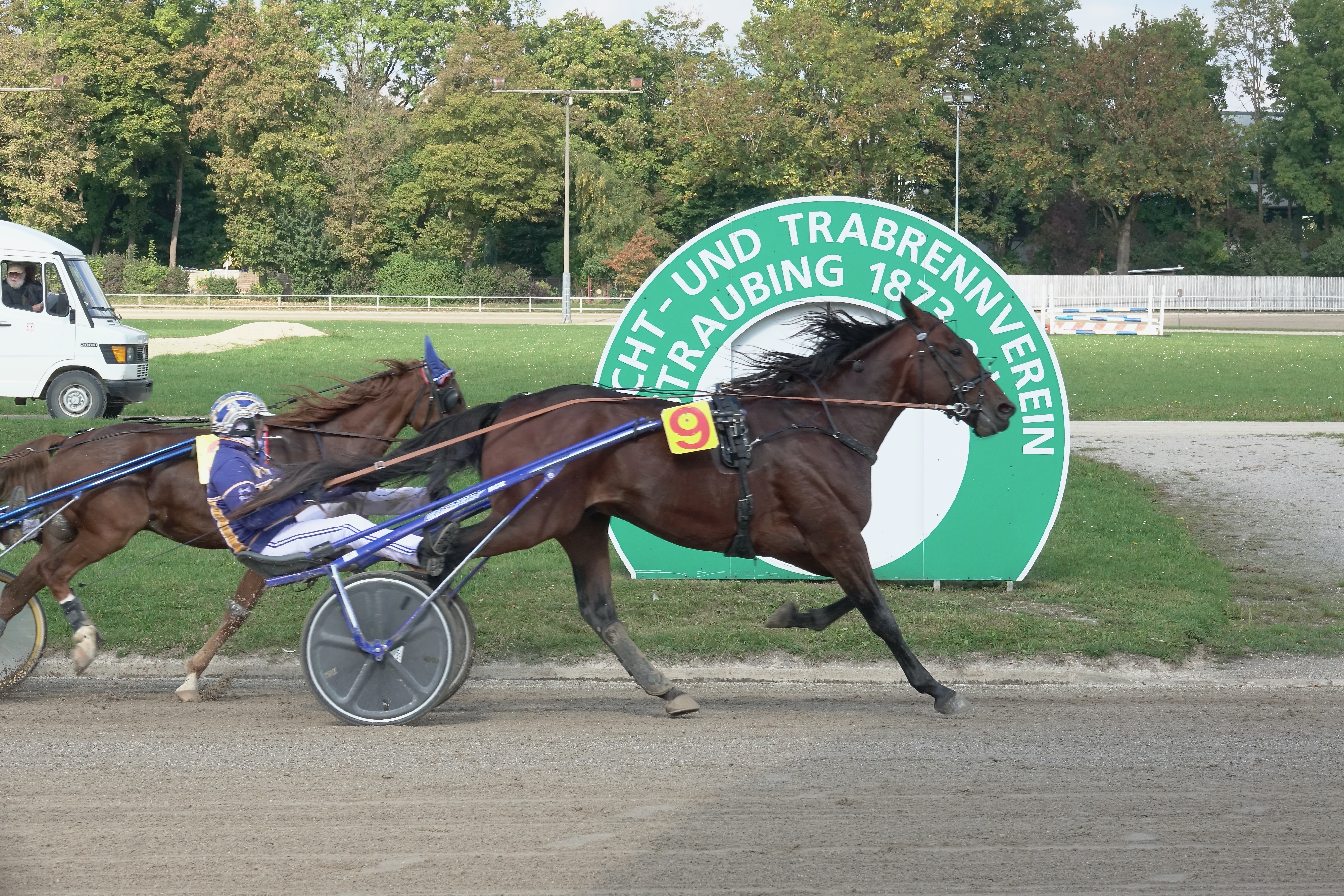 Wäre Desiderio nicht gewesen, dann hätte es vermutlich einen vierten Schub-Treffer gegeben, doch Wim Hazelaar biss sich trotz harten Kampfes die Zähne am Team-Lila-Wallach aus. Robert Pletschacher war mit Neuerwerbung Holger gleich in Front gezogen, ließ jedoch auf der ersten Überseite bereits seine Ehefrau Marisa Bock mit Desiderio passieren. Der Fünfjährige schlug ein flottes Tempo an und wehrte in der Zielgeraden auch die Attacken von Wim Hazelaar ab, der im Rücken von Dream of Action postiert war. Desiderio unterbot den bestehenden Bahnrekord deutlich und hat am Donnerstag Straubinger Rennbahngeschichte geschrieben. Die Freude beim Team war riesig und der Rekordläufer wurde bei der Siegerehrung groß gefeiert. Das dritte Geld holte sich Jeronimo.