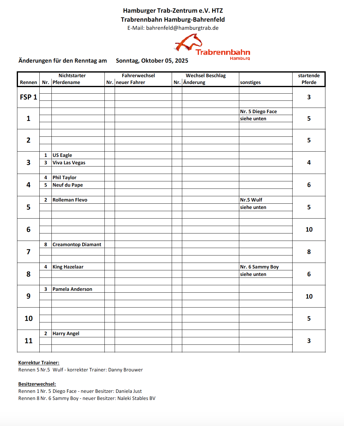 Jetzt sinds im letzten Rennen nur noch drei... Gab's das schonmal im Deutschen Trabrennsport, dass drei Pferde um 50.000 Euro laufen? |