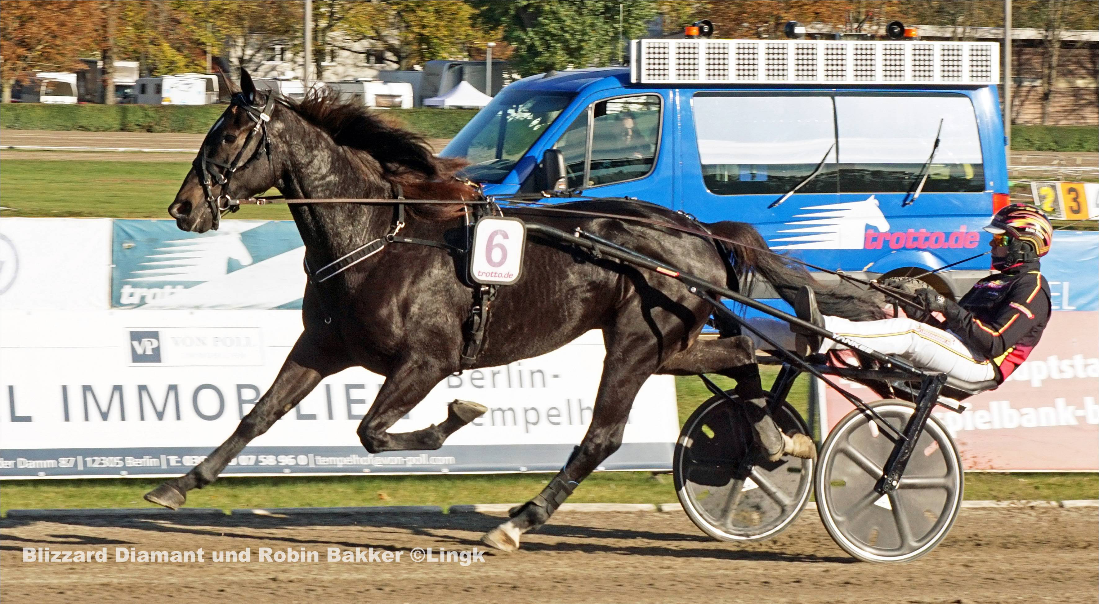 Nachschau Mariendorf, 19. Oktober 2025. Thomas Panschow führt den Riesenaußenseiter Klaus von Herten zu einem sensationellen Breeders-Crown-Triumph. Nicht weniger als vier der anderen fünf Hauptläufe gehen an Michael Nimczyk. Blizzard Diamant und Robin Bakker holen ebenfalls eine Krone. Sechs Breeders-Crown-Hauptläufe, eine Entlastung und drei weitere Rennen: Über 205.000 Euro Preisgeld und Züchterprämie wurden am zweiten Tag des Berliner Meetings an die Sieger und Platzierten verteilt. Und obwohl es natürlich immer eine subjektive Entscheidung ist, welche Pferde die meiste Aufmerksamkeit verdienen, stand der Hauptlauf der vierjährigen Hengste und Wallache besonders im Brennpunkt. Denn die Prüfung wies inklusive der fünfzehnprozentigen Züchterprämie mit über 38.000 Euro nicht nur die höchste Dotation der Sonntagveranstaltung auf, sondern sie war zugleich eine echte Derby-Revanche. Keine Geringeren als die beiden Erstplatzierten des wichtigsten deutschen Trabrennens, nämlich Summermusic’night S (Michel Rothengatter) und Aladin (Michael Nimczyk) gaben sich die Ehre. Aber sie wurden diesmal von einem kalt erwischt, der im August gar keine Derby-Nennung besessen hatte. Nämlich von Klaus von Herten, der zum dritten Mal in seiner Laufbahn Thomas Panschow anvertraut war. Dass genau diese beiden Protagonisten im Vorjahr bereits den zweiten Rang in einem Breeders-Crown-Hauptlauf belegt hatten, hätte für die Favoritenwetter eigentlich eine Warnung sein müssen. Aber Klaus von Herten, der den 150 Mitgliedern des Vereins Bürgertraber Herten gehört und von Laurenz Meßmann gezüchtet wurde, wurde im Gegensatz zu den für 1,5-faches bzw. 3,1-faches Geld gehandelten Aladin und Summermusic’night S sträflich unterschätzt. Für die vermeintliche dritte Wahl des Trainingsquartiers Nimczyk wurde die Quote von 23:1 aufgerufen. Eine Fehlentscheidung, denn Klaus von Herten schoss sofort an die Spitze, während sich Summermusic’night S und Aladin an zweiter und vierter Stelle außen wiederfanden. Vielleicht hätte es für Aladin, mit dem sich Michael Nimczyk strikt am Vordermann orientiert hatte, dennoch gereicht. Als Summermusic’night S aber im Schlussbogen überraschenderweise den Anker warf, musste der Goldhelm seinen Schützling relativ aufwendig um das nicht erwartete Hindernis herum steuern. Diese Situation nutzte Thomas Panschow clever aus und setzte sich mit Klaus von Herten entscheidend ab. In der Tagesbestzeit von 12,6/1.900m ließ sich das Gespann vom hinzueilenden Aladin nicht mehr abfangen und machte auf einen Schlag 150 Pferdebesitzer glücklich! Auch im Hauptlauf der vierjährigen Ladies waren die beiden Erstplatzierten des Stuten-Derbys am Start. Doch am Ende durften weder die diesmal von Jörgen Sjunnesson gelenkte Uffizie noch die von Micha Brouwer pilotierte Okura Greenwood den Winner-Circle aufsuchen. Ihnen blieben aber immerhin die Ränge drei und zwei, da Charming Laura, die mit Thorsten Tietz eigentlich den Ehrenplatz belegt hatte, nach dem Rennen wegen unreiner Gangart aus der Wertung genommen wurde. Richtig feiern lassen durften sich indessen Michael Nimczyk und Sahara Firebird Beide hatten nur kurz Charming Laura an der Spitze erduldet und dann konsequent die Führung übernommen. Auf der Zielgeraden ließ Stall Germanias Pferdedame überhaupt keine Spannung mehr aufkommen. Sahara Firebird, die im Stuten-Derby krankheitsbedingt nicht antreten konnte, ging in 14,1/1.900m mit sechs Längen Vorsprung auf und davon und unterstrich eindrucksvoll ihren Anspruch, die beste Stute im Jahrgang zu sein. Im Hauptlauf der dreijährigen Stuten ging das Publikum zur 1,5-fachen Quote mit Alma Mia (Robbin Bot). Doch die Stute kam – wie schon in Daglfing – nicht glatt um den Kurs. Stattdessen sprang die ebenfalls auf dem Kaiserhof vorbereitete Brownie Diamant mit Michael Nimczyk in die Bresche. Nach einem Verlauf als zweites Pferd innen wurde die von den Familien Holzapfel und Schwarz gezüchtete und für die Besitzergemeinschaft M.S.Diamanten/Pietsch laufende Dunkelbraune vom Champion Ende gegenüber flott gemacht und verabschiedete sich in 13,3/1.900m überlegen mit sechs Längen Vorsprung von ihren Gegnern. Was dann unmittelbar darauf – ebenfalls für die Besitzergemeinschaft M.S.Diamanten/Pietsch – im Hauptlauf der dreijährigen Hengste und Wallache folgte, war fast erschütternd. Denn mit den Gegnern des von der Familie Schwarz gezüchteten und von Robin Bakker präsentierten Blizzard Diamant konnte man nur das tiefste Mitleid empfinden. Sicherlich – dass der nationale 10,0-Rekordhalter höchste Klasse verkörpert, war überall bekannt und es war kaum verwunderlich, dass Blizzard Diamant als 1,0-Ultrafavorit in der V7+ Wette auf 95 Prozent der Tippscheine als Bankpferd angekreuzt war. Aber dass sich die Konkurrenten – wenn sie diese Bezeichnung überhaupt verdient hatten – Blizzard Diamant bei seinem Start-Ziel-Sieg in 13,9/1.900m während des gesamten Rennens noch nicht einmal ansatzweise näherten und sich lediglich auf den Kampf um den zweiten Rang konzentrierten, muss selbst Robin Bakker verwundert haben. Gegenüber konnte sich der holländische Ausnahmesportler mit dem Wallach sogar eine 19,1-Zwischenzeit erlauben, ohne dass irgendjemand Tuchfühlung mit ihm aufnahm. In der Mariendorfer Historie war wohl nur selten ein Traber so dominant wie Blizzard Diamant und die anderen Teilnehmer dieses Hauptlaufs hatten sich offenbar schon weit vor dem Start mit einer klaren Niederlage abgefunden. Die beiden Hauptläufe der zweijährigen Pferde erfuhren mit 10 bzw. 9 Teilnehmern eine erfreuliche Resonanz. Bei den Stuten gab es einen Doppeltreffer für den Trainer Wolfgang Nimczyk, denn sein Sohn Michael setzte sich für den Stall Express mit der von Arne Fiedler gezüchteten What a Dream gegen die von seinem Schwiegersohn Robbin Bot gesteuerte Regina Wescco durch. Der Goldhelm hatte seinen Angriff Ende der Gegenseite eingeleitet und sah mit der Stute Mitte de