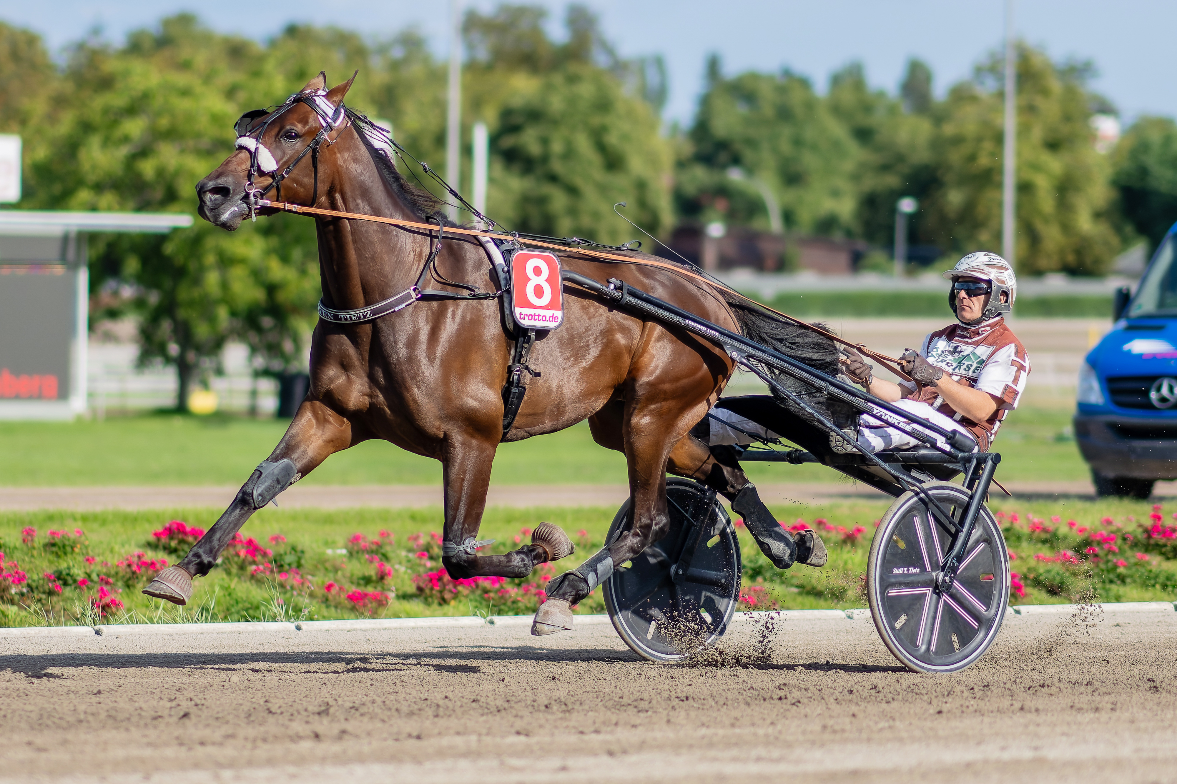 Vorschau Solvalla, Mittwoch 11.03.2026 (hhü) Ein enorm chancenreiches Quintett wird die derzeit mit großem Erfolg agierende Trainergemeinschaft Sybille Tinter und Thorsten Tietz am Mittwochabend in Solvalla aufbieten. Los geht es mit der dreijährigen Halina (Fredrik Plassen), die im zweiten Rennen auf fünf Altersgefährtinnen treffen wird. Bei ihrem letzten Auftritt vor drei Wochen verzichtete man auf einen geschlossenen Zaum und gab ihrem ständigen Fahrer Fredrik Plassen auch die Order, mit der Stute aus dem Rücken heraus zu agieren. Beide Pläne gingen dabei sehr gut auf. Halina war deutlich relaxter als bei den vorangegangenen Auftritten und fand sofort den Rücken des letztlich siegreichen Transcutaneous, der die Fuchsstute des Stalles Long Island dann allerdings bis zur Ziellinie nicht mehr aus dem Innenkanten-Gefängnis entließ, sodass sie mit Händen voll und ohne freie Fahrt nur auf Rang drei landete.Dennoch sollte gerade diese defensive Ausrichtung die Stute enorm weitergebracht haben. Diesmal trifft sie bereits zum dritten Mal auf Royaute Boko (Claes Sjöström), die als gute Beginnerin wahrscheinlich wieder in der Angreifer-Position zu finden sein dürfte. Etwas schwerer ist die aus einer fast fünfmonatigen Winterpause kommende Arizona Trot (Carl-Erik Lindblom) einzuschätzen, die bereits als Zweijährige viel Talent erkennen ließ. Unter dem Strich ist es aber eine sehr passende Aufgabe für Halina, die sie auf jeden Fall lösen kann. Im fünften Rennen wird Steady Countess (Fredrik Plassen) an den Start kommen. Die zuletzt etwas unglücklich gescheiterte Vierjährige steht hier blendend in der Partie und muss sich beim Kampf um den Sieg wohl in erster Linie mit dem gleichaltrigen Romulus Diablo (Claes Sjöström) auseinandersetzen. Auch die Gocciadoro-Stute Appia Express (Magnus Djuse) steht hier mit Startplatz eins blendend in der Partie. Eine Doppelspitze bietet das Team Tinter/Tietz direkt danach in einem Nachwuchsrennen auf. Die erste Farbe des Stalles sollte hier trotz des ungünstigen Startplatzes zwölf Figaro II mit Fredrik Plassen im Sulky sein. Aber auch Power of Greenwood (Tom Johansson) aus dem Besitz von Olaf Beeck hat sich kontinuierlich verbessert und kann zudem auf eine sehr günstige Ausgangsposition pochen. M.T. Urus (Lucas Vikström) oder Fibonacci Font (Jennie Ek) sollten nach aktueller Verfassung hier die stärksten Gegner für das Tinter/Tietz-Duo sein.