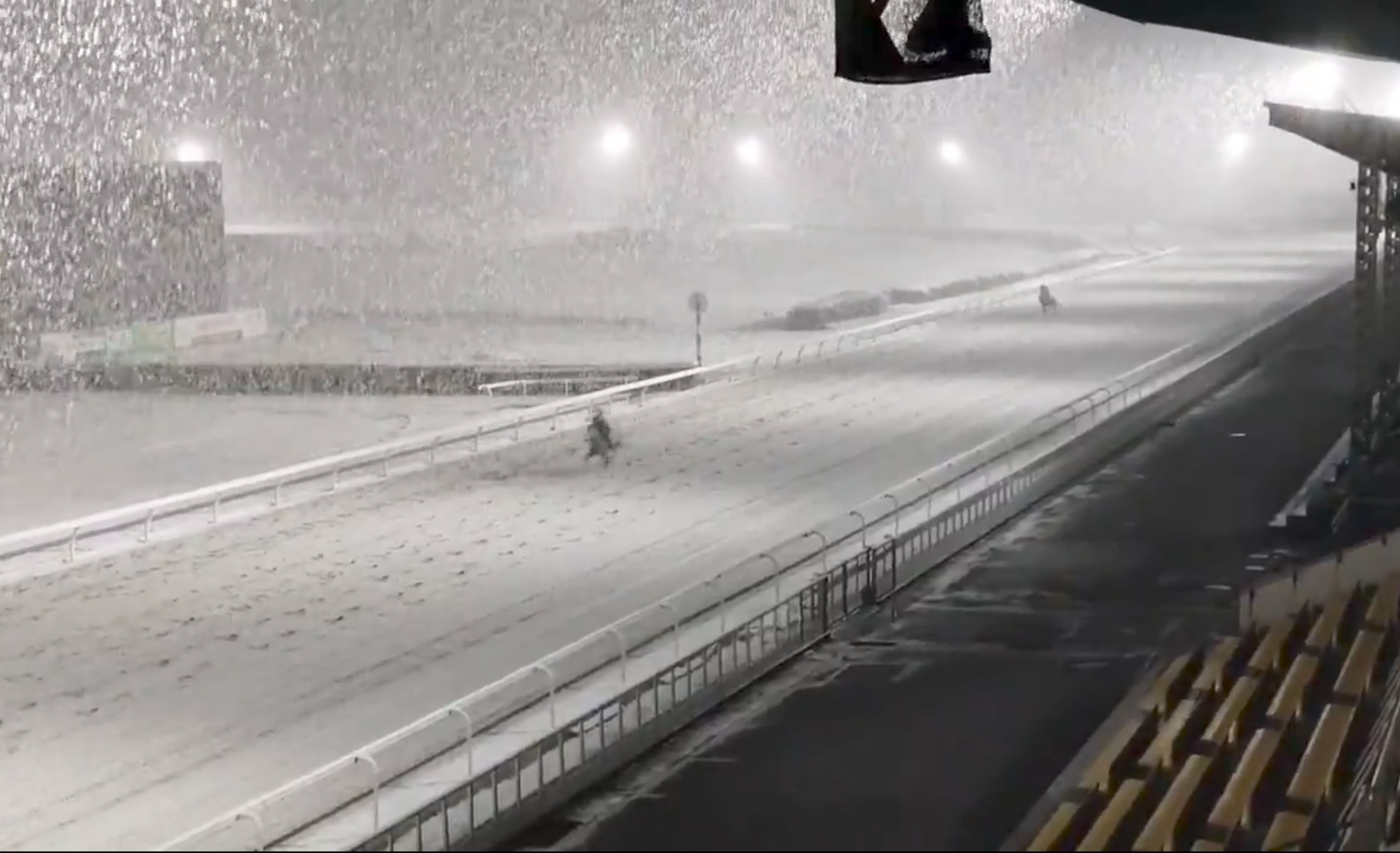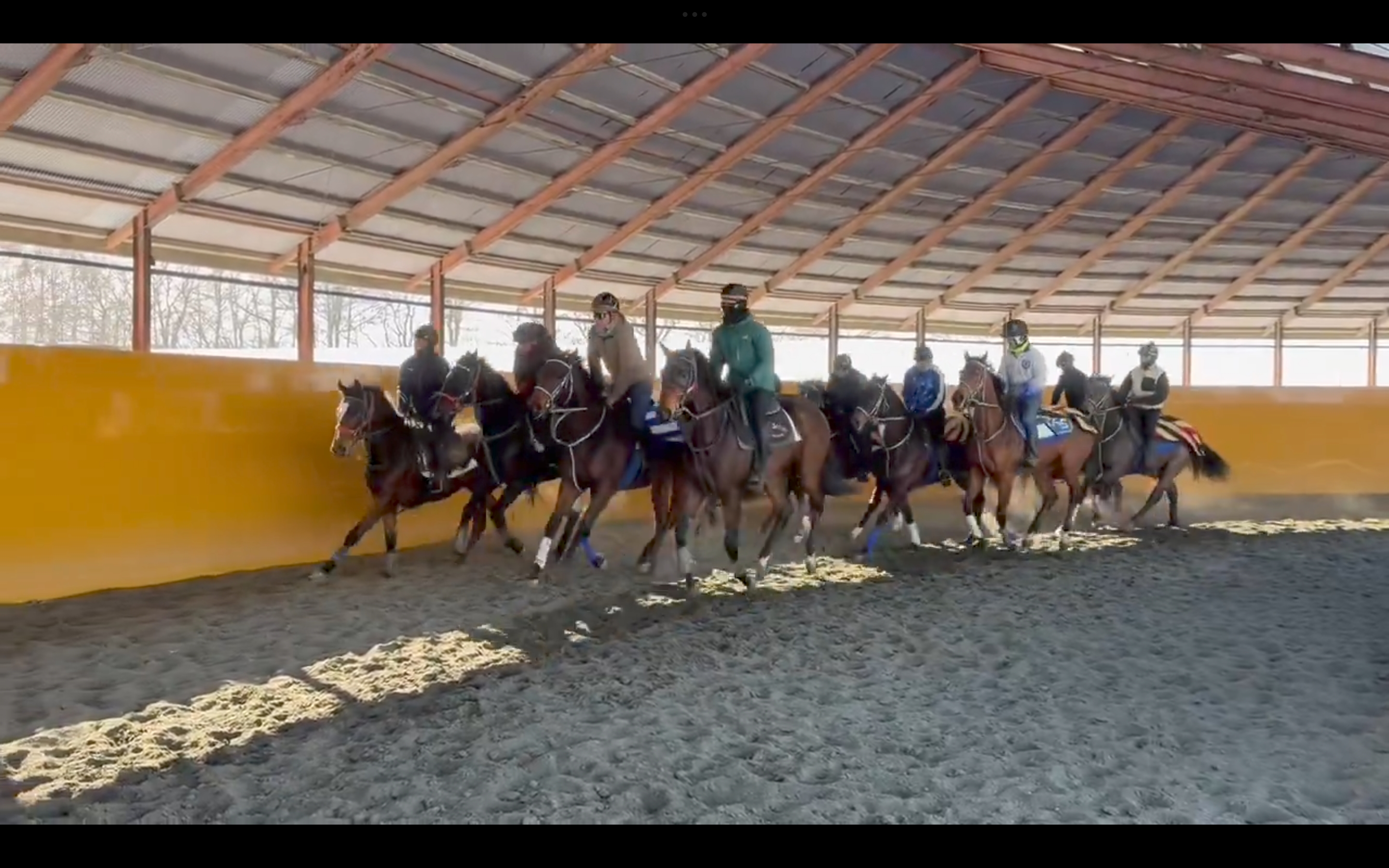 Hokkaido Jiel und Hokkaido vorgestern. Hokkaido Jiel mit Pleger Samuel Pėrinel am Strand v. Blonville s.M. Auf Hokkaido mehr Schnee als gewöhnlich. 90% aller jap Rennpferde werden dort im Schnee geboren. Zum Glück halten die ca. 11 tsd Bären Winterschlaf und es braucht keine Bärenwachen. Die gerade 2yo gehen in Pulks unter den Dächern. |