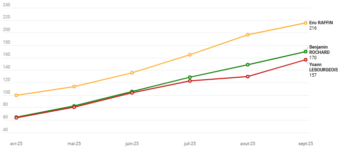 Die Wahrscheinlichkeit, dass Eric Raffin Ende 2025 zum siebten Mal zum französischen Champion der Fahrer gekrönt wird, ist mehr als wahrscheinlich. Kaum war das dritte Quartal des Jahres erreicht, nutzte der Mann aus der Vendee den Sommer, um seinen Vorsprung auszubauen. Weniger als drei Monate vor dem Ende des Sulky d’Or hat der Fahrer alle Trümpfe in der Hand.