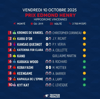 Bereits gestern war die Staterangabe für den Prix Edmond Henry (GR II), der am Freitagabend in Vincennes unter dem Sattel ausgetragen wird. Wer wird der Nachfolger von Jeroboam d’Erable? Kyt Kat ist auch ein Kandidat für den Sieg. Nach seinem Wiedereinstieg im Trabreiten im vergangenen Monat tritt er diesmal barfuß an.