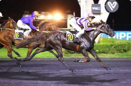 Weil Mathieu Mottier sich als Trainer von Kobayashi für die Hunter Valley-Farbe entscheiden musste, nahm zum zweiten Mal Camille Levesque im Sattel des 5jährigen Platz. Und mit diesem Erfolg blieb das Duo ungeschlagen, nachdem man beim ersten gemeinsamen Auftritt vor gut einem Jahr den Prix des Elites (GR I) gewinnen konnte. Der zweifache Gruppe I-Sieger zeige sich nur auf den ersten paar hundert Metern ein wenig zu gehfreudig. Camille Levesque konnte den Hengst aber schnell bremsen und behielt ihn zunächst im hinteren Teil des kleinen Feldes, nachdem die am Toto besser angefassten Kobayashi, Keengame und Kapaula De L´Epine alle früh ausgeschieden sind. Früh bestimmte Katchina For Clara mit Alexis Collette vor Karaka Wood die Pace. Kyt Kat rückte nach einem Kilometer an die Seite von Karaka Wood, wurde kurz darauf aber in den Rücken der Zweitplatzierten genommen. Dieses Trio löste im Schlussbogen deutlich von dem stark dezimierten Feld. Während Collette versuchte sich an der Spitzte Luft zu verschaffen, kamen Karaka Wood und vor allem Kyt Kat im Einlauf immer besser in Fahrt. Im Ziel hatte Kyt Kat in 13,2/2.700 Meter sogar eine Länge Vorsprung herausholen können. Denselben Abstand hatte sich Karaka Wood auf Katchina For Clara gesichert. "Es freut mich wirklich, denn wir sind bisher nur einmal zusammen gestartet und haben dabei einen Klassiker gewonnen", sagte Camille, die nach einer Babypause wieder den Geschmack eines Gruppensiegs genießen konnte. "Heute Abend war vor allem wichtig, dass er Sicherheit bekommt. Ich wollte unbedingt unter die ersten Drei kommen. Wir hatten ein wenig Glück, weil einige Favoriten einen Fehler machten." Den guten Verlauf hat die zweifache Mutter bewusst gewählt: "Ich wollte mich vor den Tribünen positionieren, um nicht den Wind im Gesicht zu haben", erklärt sie. "Als ich sah, dass Katchina For Clara die Spitze übernahm, habe ich mich entschieden, mich etwas zurückzufallen zu lassen und in die dritte Position nach innen zu gehen. Im letzten Bogen war er sehr leicht zu steuern. Am Ende gewann er ziemlich sicher, auch wenn es kein überwältigender Vorsprung war. Die Leistung sei beruhigend. Es gibt bei ihm immer wieder Phasen der Unsicherheit. Viele halten ihn für etwas müde, aber er kommt zurück, was ein gutes Zeichen für das Wintermeeting ist." In diesem Halbklassiker reiht sich Kyt Kat nun in eine prominente Siegerliste ein - er folgt Jeroboam d’Erable, I Can Dream, Hanna des Molles und Granvillaise Bleue. Ob er selbst in die großen Fußstapfen von Hanna des Molles oder gar Granvillaise Bleue treten kann? Sein Weg könnte zumindest im Januar in den Cornulier führen. Karaka Wood hatte beim erst zweiten Start unter dem Sattel eine gute Figur gemacht, auch wenn der Jockey Benjamin Rochard einen Moment mehr erwartete: "Ich dachte, sie würde noch einen Schritt mehr machen, als ich nach außen wechselte. Aber das war nicht der Fall. Kein Moment hat mir gezeigt, dass es klappen würde." --------- Sonntag in Graignes - Comeback von Make Your Day Nach knapp acht Monaten Auszeit, kehrt MAKE YOUR DAY am Sonntag in Graignes in den Wettbewerb zurück. Der Schützling vom Ecurie Hunter Valley wird, wie schon im Januar, von Franck Nivard gesteuert. Foto: SCOOPDYGA