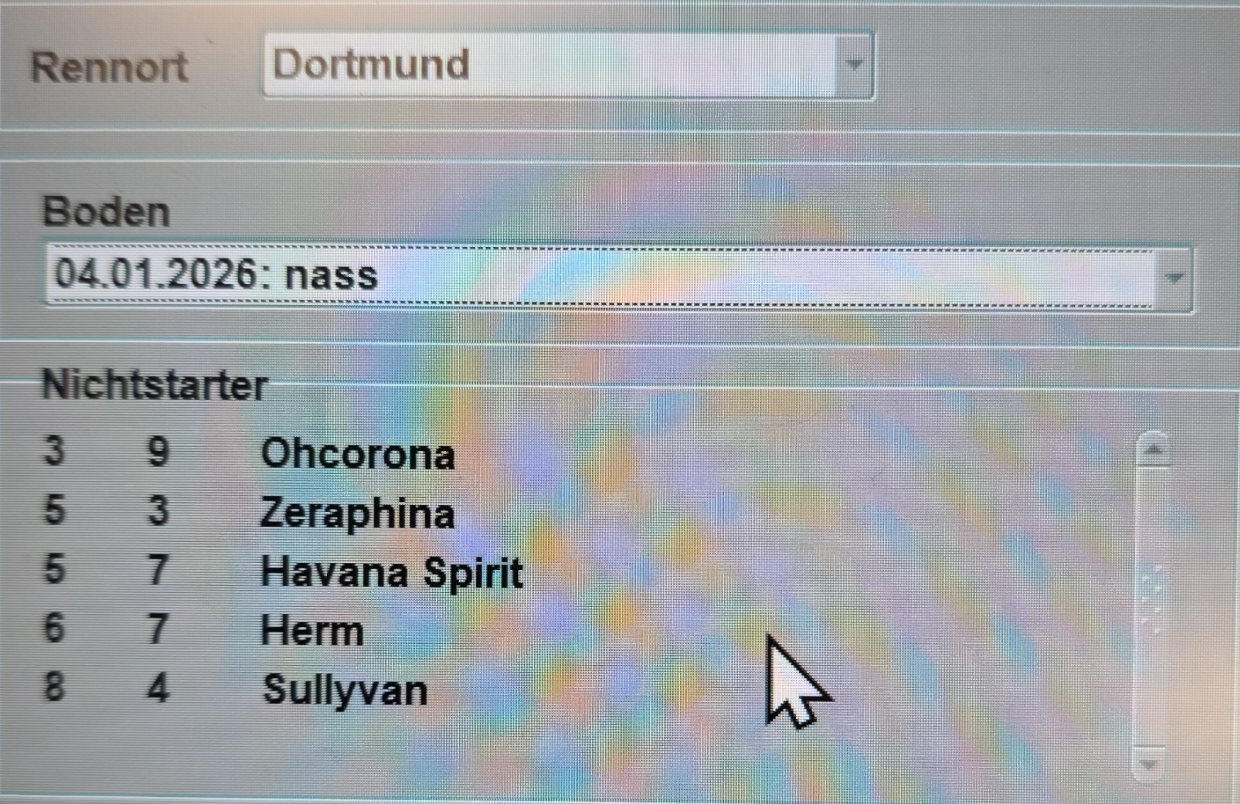 Beide schicken sich nun an, am Sonntag über schnelle 1.200m für dreijährige Pferde den ersten Sieger des Jahres zu stellen. Leicht favorisiert in der mit 8.000 Euro dotierten Prüfung scheint dabei der Schiergen-Schützling Mannis Boy, der für das Gestüt Ittlingen im Besitz des Dortmunder Rennvereinspräsident Manfred Ostermann antritt. Schiergen hatte mit Alpenjäger auch das letzte Rennen 2025 gewonnen. Die Stute Taromina aus dem Grewe-Stall dürfte in dem Fünfer-Feld die schärfste Konkurrentin sein. Acht Rennen stehen am Sonntag auf der Karte des Dortmunder Rennvereins, der Eintritt ist wie immer in der Wintersaison frei, die Tribünen sind offen - für ein abwechslungsreiches kulinarisches Angebot und Unterhaltung für die Familie ist gesorgt. Aber natürlich auch für die Wett-Freunde: Es gibt ein Quartett an zahlenmäßig stark besetzter Handicap-Rennen der Kategorie Ausgleich IV über Distanzen von 1.200m, 1.700m, 1.950m und 2.500m, bei denen die Pferde je nach Vorleistung unterschiedliche Gewichte tragen müssen. Elf treten in der Steherprüfung über 2.500m an. Der sechsjährige Aurum Sky, den Pavel Bradik trainiert, trägt das Höchstgewicht, gehört in alle Überlegungen, denn seine Bilanz in Wambel ist nahezu makellos. Am unteren Ende der Skala steht mit 14 Kilogramm weniger der doppelt so alte Nolan von Julia Rogl. In dem Werrtungslauf der Galopp Impuls Stiftung wird die Viererwette ausgespielt, die der Rennverein mit 10.000 Euro Mindestausschüttung garantiert, die unter den richtigen Tipps aufgeteilt werden.