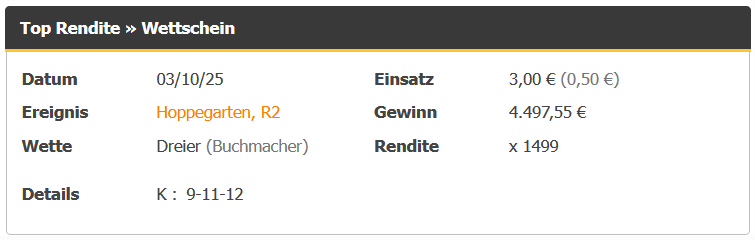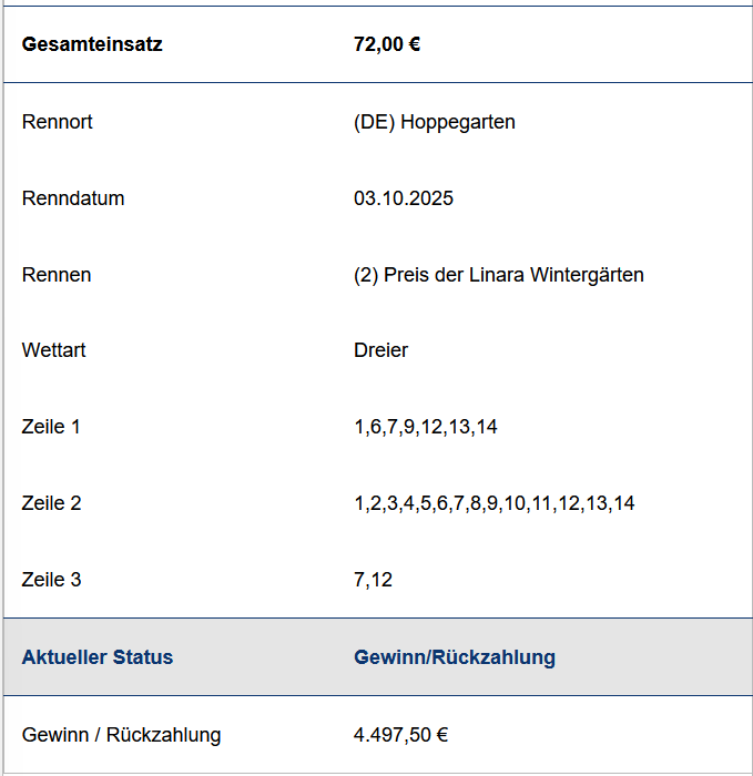 Noch erfolgreicher Abschluss mit minimalem Einsatz und super DW Quote 😉 |