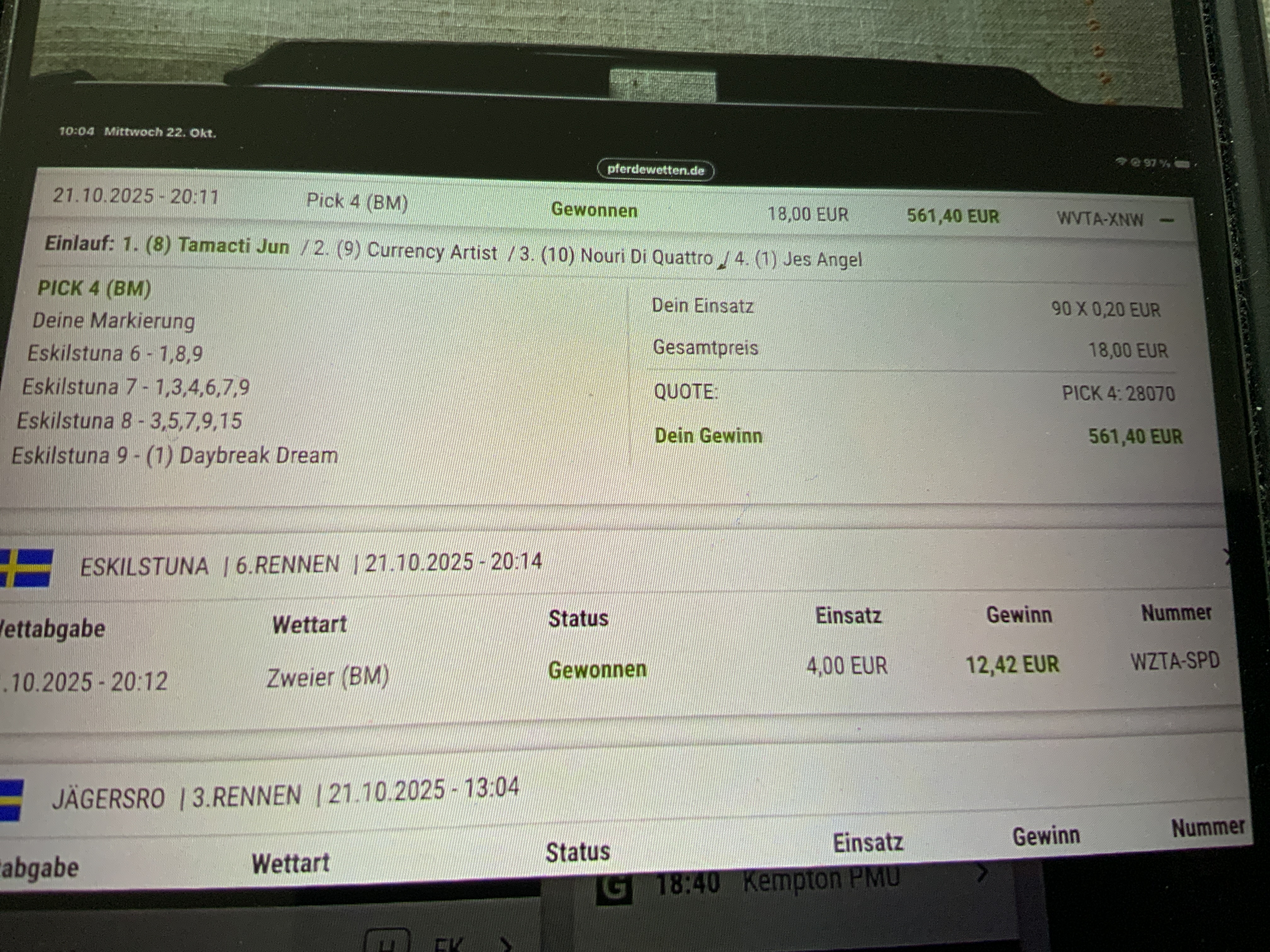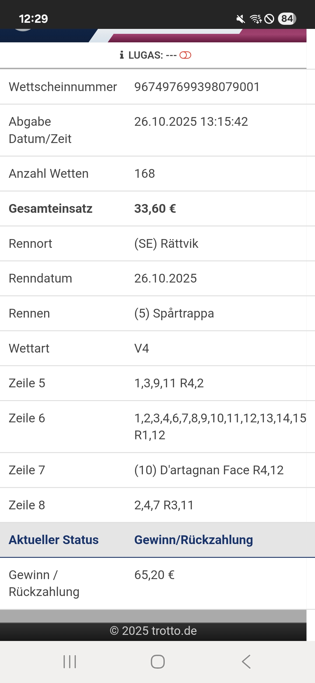 Hast du besser gemacht als ich. Um Minieinsatz die 8 im vorletzten bankiert. Da V65 gab es freudlose 108
