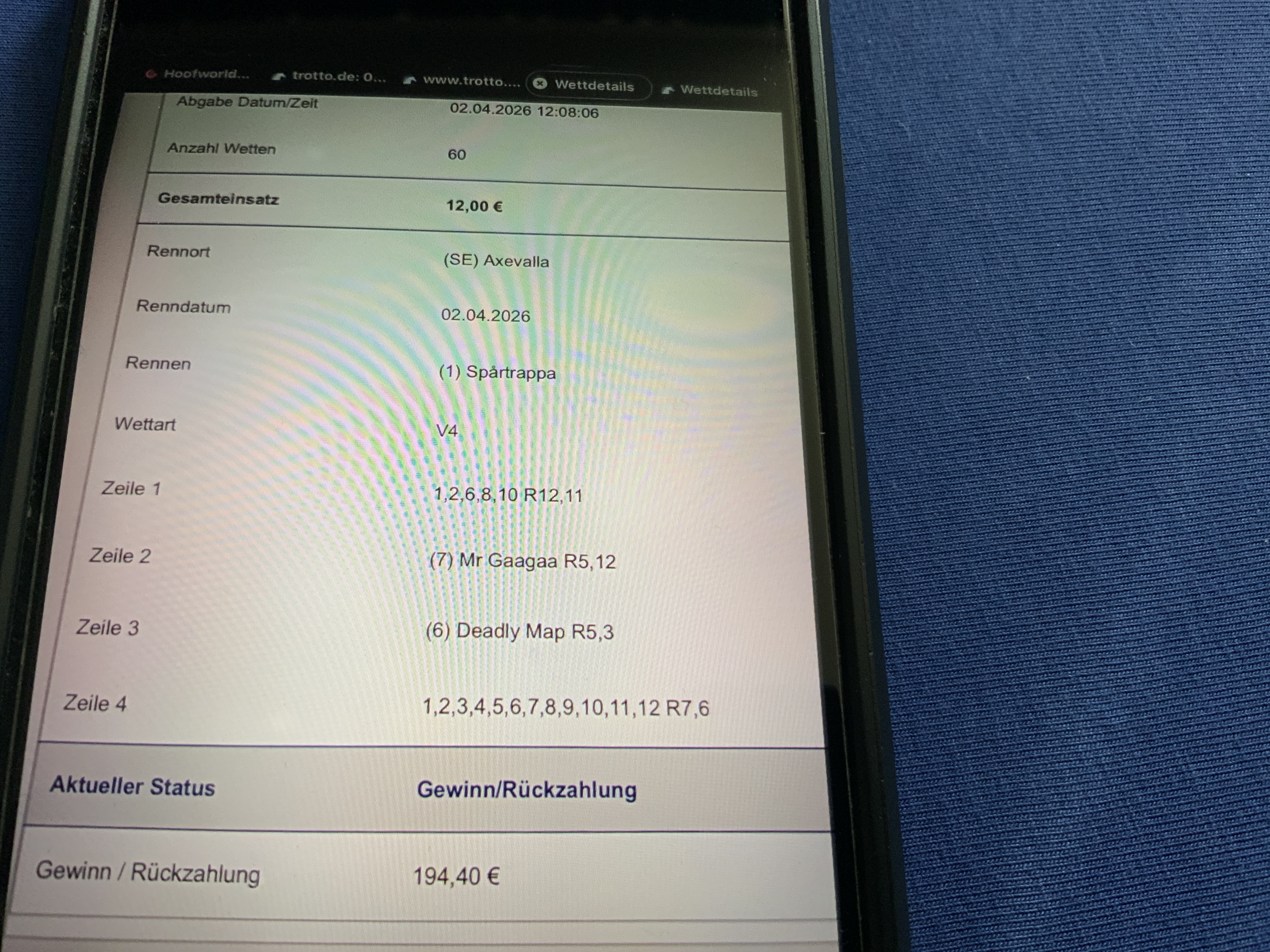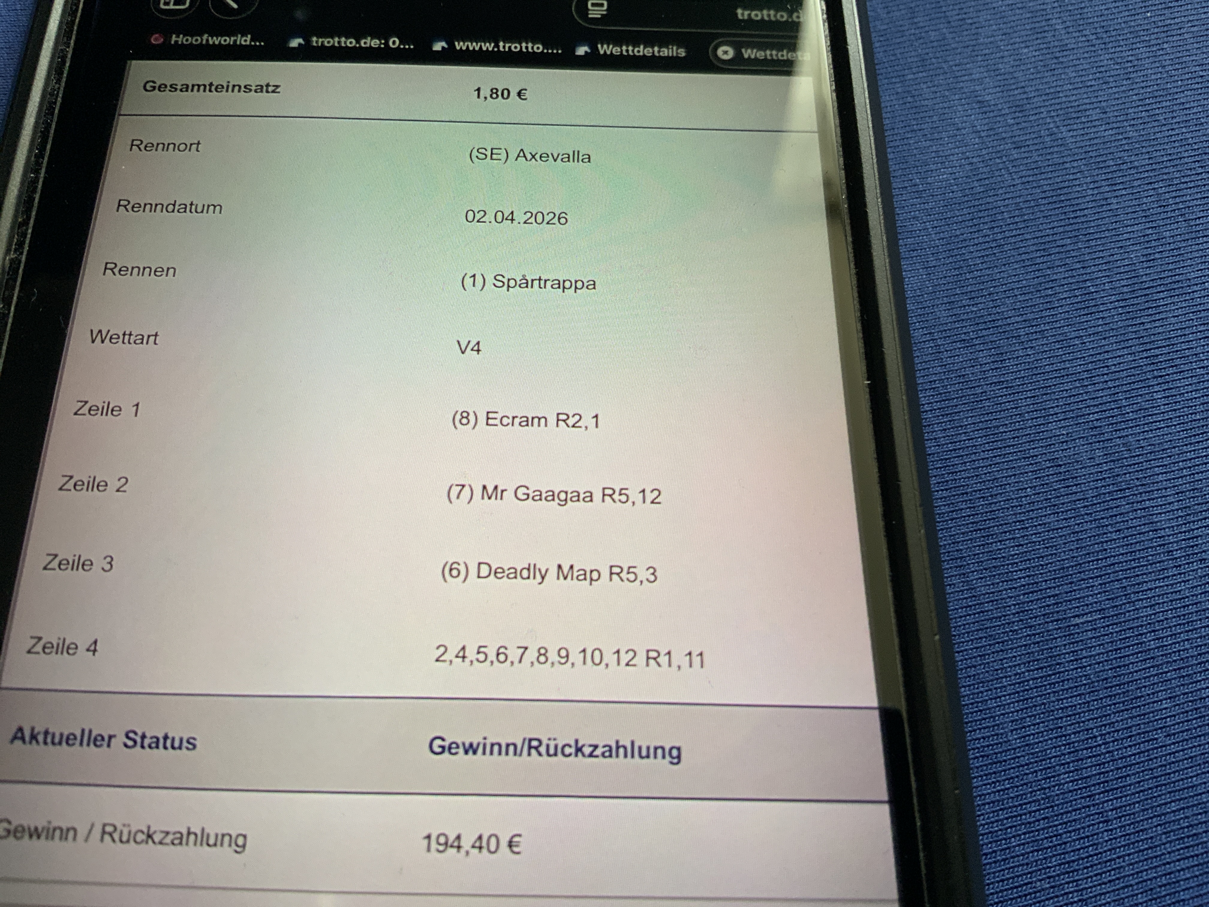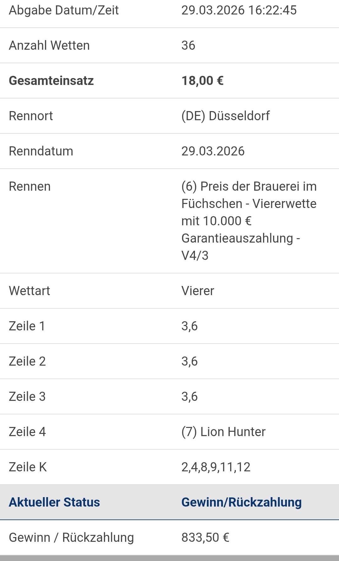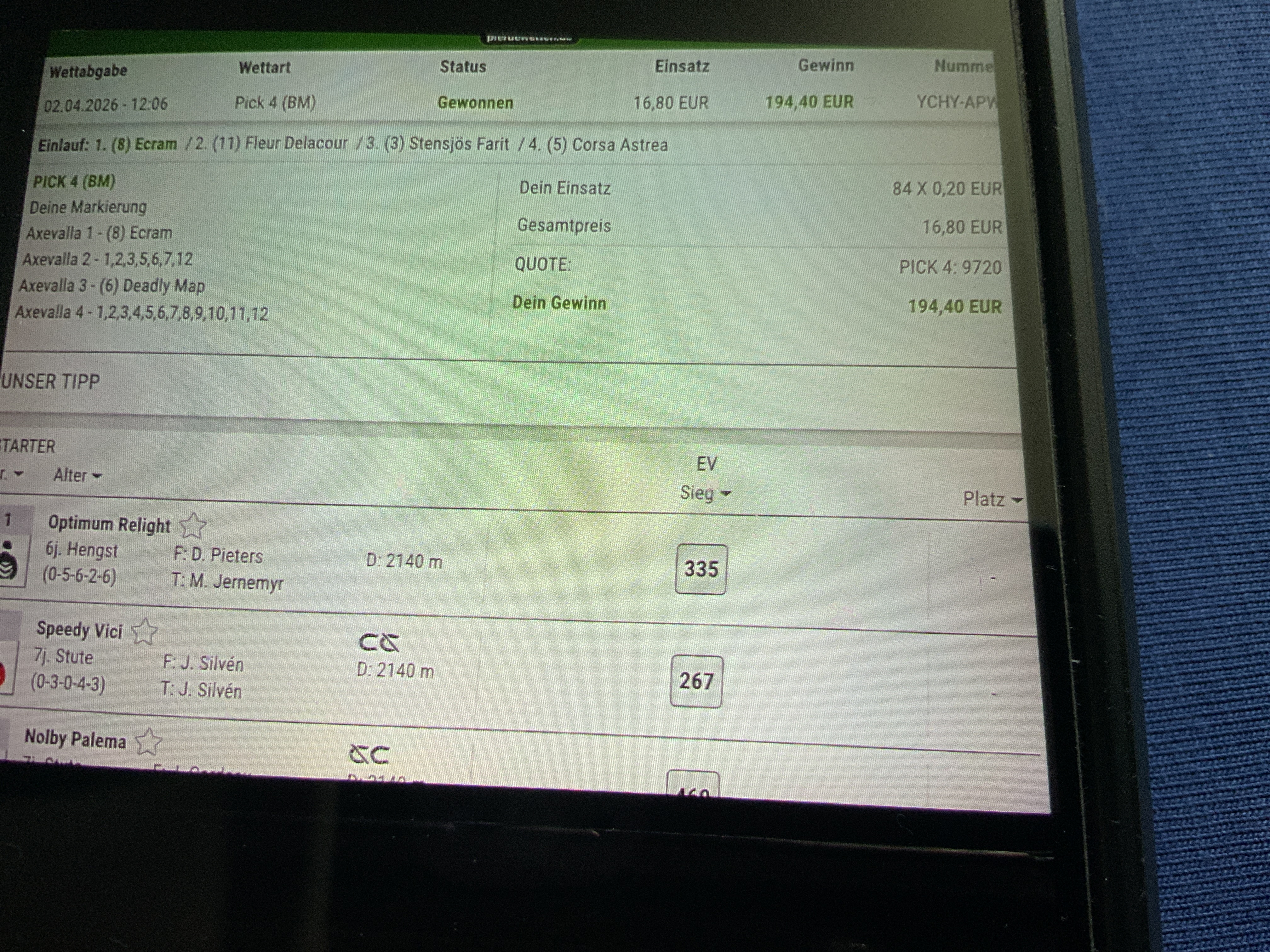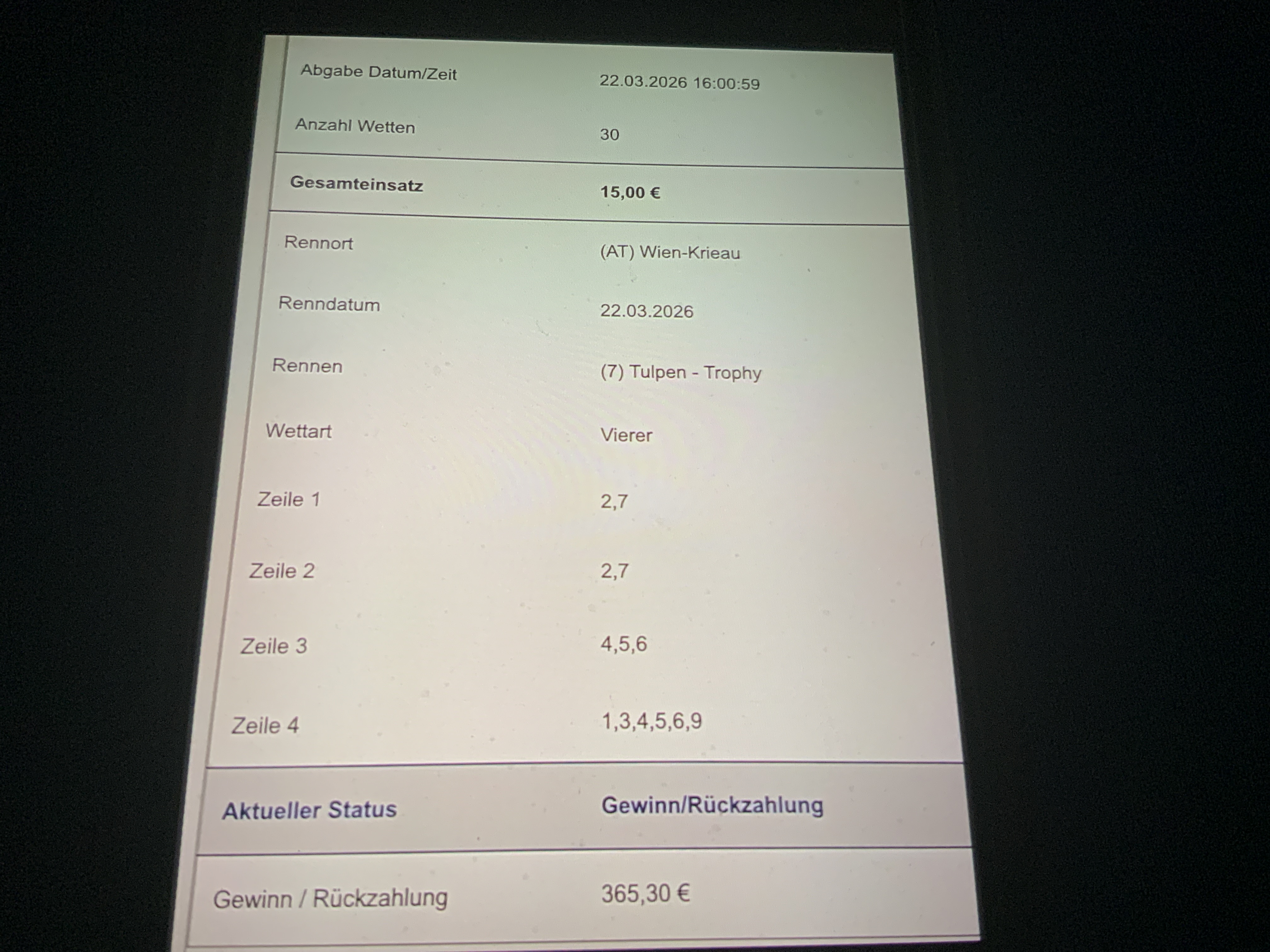 Schöne Vierer Wette in der Krieau mit einem 100:1 😉 |