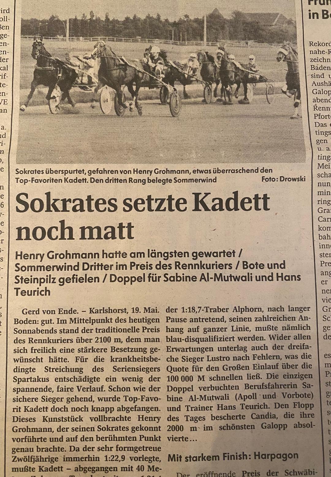 :-) Alles feine Pferde. Hat da überhaupt Kadett gewonnen? |