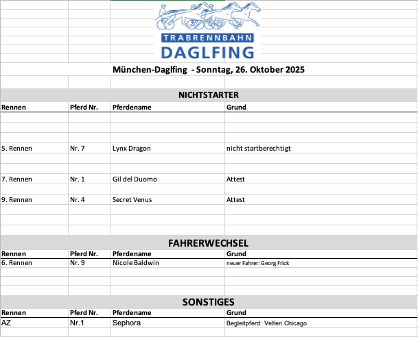Vorschau München-Daglfing, Sonntag 26.10.2025