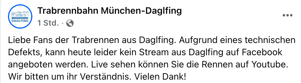Wir freuen uns auf viele Zuschauer! 🐎💨 Wir freuen uns bereits sehr auf den kommenden Renntag - es wird auch bei uns im Süden immer kälter, allerdings gibt's genug warme Plätze auf der Rennbahn 🔥 --> Traberstadl --> Willis Futterkiste --> Sulky Treff im OG (Eintritt 4€/ für Mitglieder des MTZV entfällt der Eintritt) Wir freuen uns auf zahlreiche Besucher, ambitionierte Wetter und spannenden Rennsport ☺️ |
