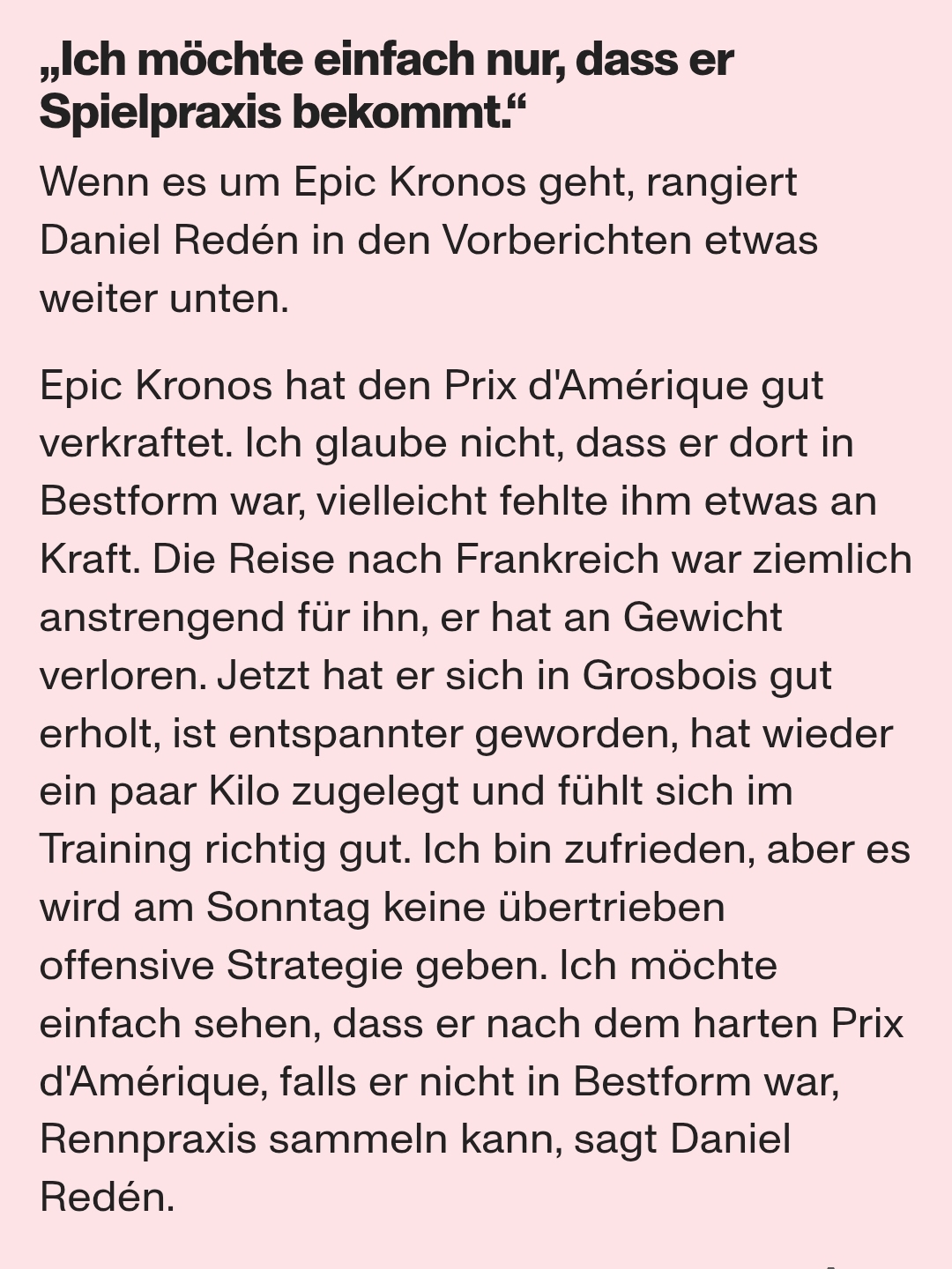 If you watch the 2024 race in Vincennes, he actually takes the front at a very good pace! This year... nope.