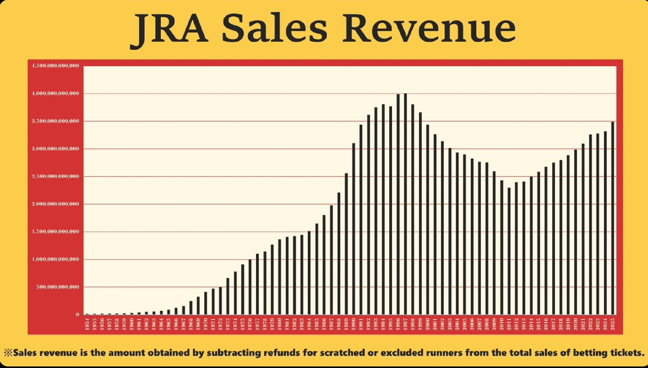 @Highroller Wenn du das vor 10 Jahren gehört hast.........., Jetzt 13j nacheinander Tendenz steigend. Auf dem Niveau. Corona 2020/21 keine Delle. Brauche ich dir nicht sagen. Warum auch eine Delle, trotz der Bilder von den Bahnen bleibt Bahnumsatz nur ein Indikator und die Kirsche auf der Sahne. Möchte ich hier mal wieder explizit erwähnen. Ansonsten Umsatzabschwung Mitte der 90er wie überall auf der Welt parallel mit der Gesellschaftlichen Änderung durchs WWW. Pic 2018 die erlaubten Besucherzahlen limitiert und die Bahnen u Bahnhöfe ruckzessive erneuert und auf diese Zahlen für das Besuchererlebniss der "Jedermann Kunden" optimiert. Sind jetzt wie US Malls mit großen Selbstbedienungs Flächen. Nudelsuppen u Burger statt Champagner Logen. Viele werden sagen.... unter den Bedingungen ist der Umsatz vl. nachvollziehbar. Ja, das gesamt hohe Niveau. Aber der Anstieg der letzten 13j. fand unter den gleichen Rahmenbedingungen statt. Und der Sport an sich hat Iniativen ergriffen. Hab hier wieder über Rennleitung gelesen. Natürlich im Galopp vermeintlich einfacher. In D wurde aber über den Sieg i. Galop Derby 2j prozessiert. In Japan habe ich in 4Jahren EINE einzige RL Entscheidung erlebt. Ein talentierter Nachwuchsreiter hat wg 2x Verstoß gegen die Handyregeln seine Lizenz "freiwillig" zurückgegeben. Es gibt extrem wenig Nichtstarter. 4 Wochen vorher müssen die JRA Starter in den Trainings Centren Ritto oder Miho sein. Tägl. Temperatur Messungen protokolliert und Blutabnahme fürs vort Ort Labor wg. Entzüngsmarkern etc. Ich hab noch nie andern Tags Aussagen erlebt wie ..."der hatte einen Infekt, einen Virus...wissen wir jetzt". Die PflichtArbeiten mit Video u Zeitmessung sind kein Alibi Jogging. Nur ein paar Beispiele. Mit staatl. Hilfe u Darlehen wurde viel investiert. Weil man dem Staat erklären konnte was er davon haben wird, welche Rückflüsse. Statt zu glauben ein System in denen dezentrale Rennvereine die Glückspielsteuer Rückerstattungen bekommen, hätte mit RV Bahn Umsatz auf Dauer bestand. Traingscenter........ https://youtu.be/9G4S3-256TQ?si=t2iSc9ala8VMhUlJ https://youtu.be/nLVrB69YoJU?si=FriES2ozdurHoTI3 |
