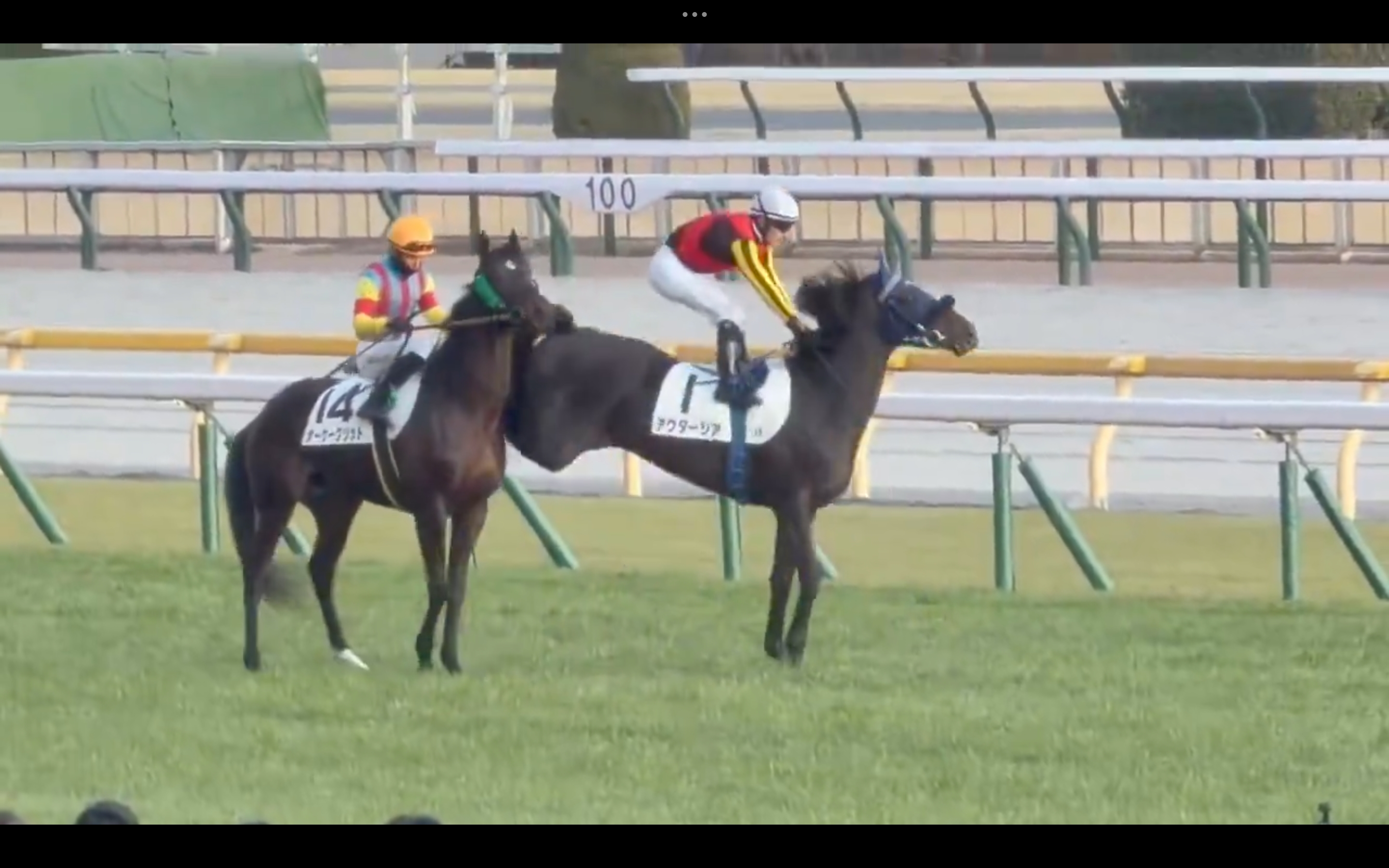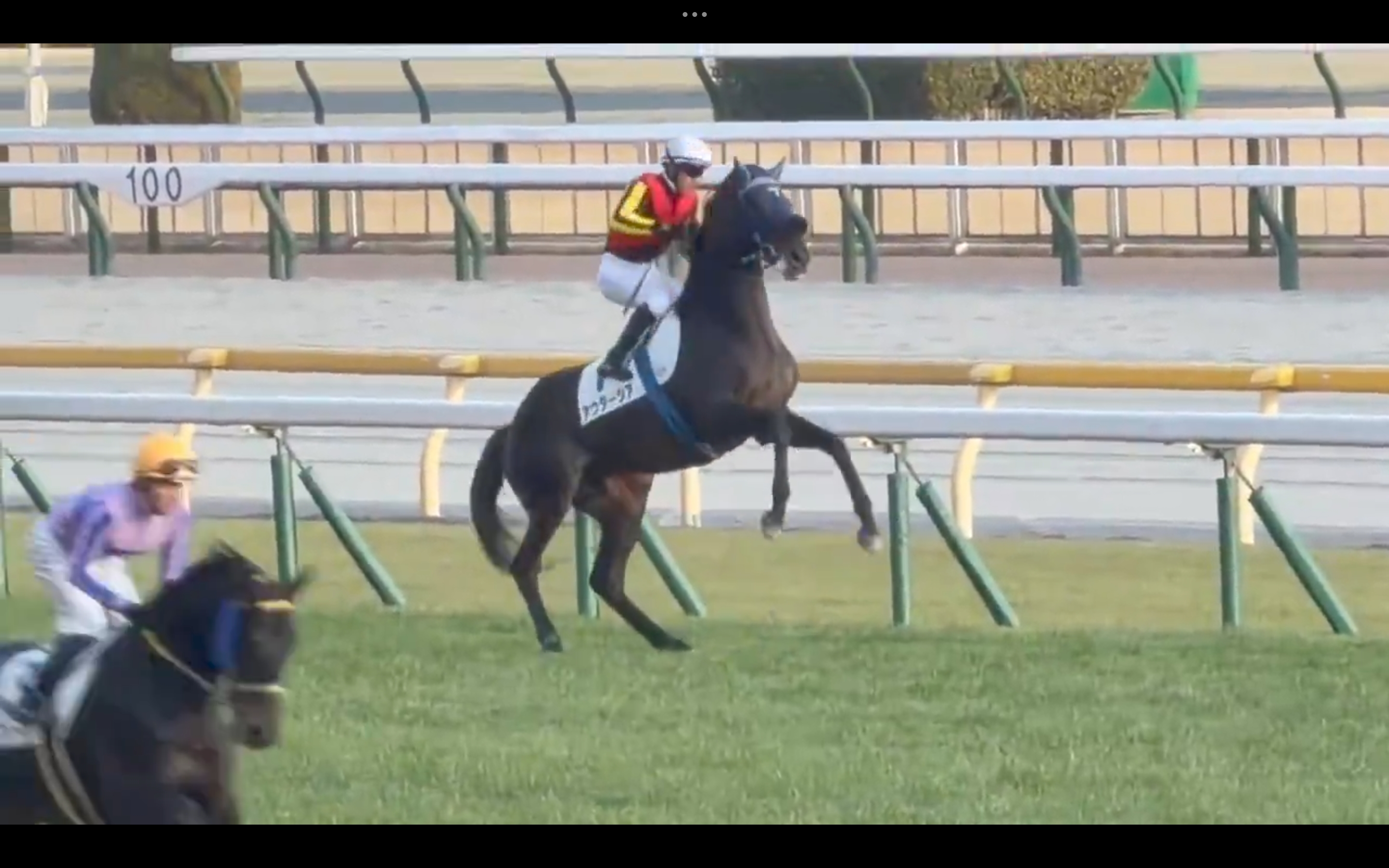 Heute Morgen unserer Zeit. Im Führring u lt. Protokollen nie auffällig gewesener schon 4jähriger gebährdet sich plötzlich wie Rodeo Pony und gefährdet andere Jocks die motivierend helfen wollten. Die junge Tanihara (3) hat wirklich Glück gehabt. Danach normal in die Startbbox u Lemaire hat sicher gewonnen Nach jedem Renntag werden Befragungen durchgeführt u. öffentlich protokolliert, auch Leistungsdchwankungen, Vorfälle in der Startbox, Rennberührungen etc. |