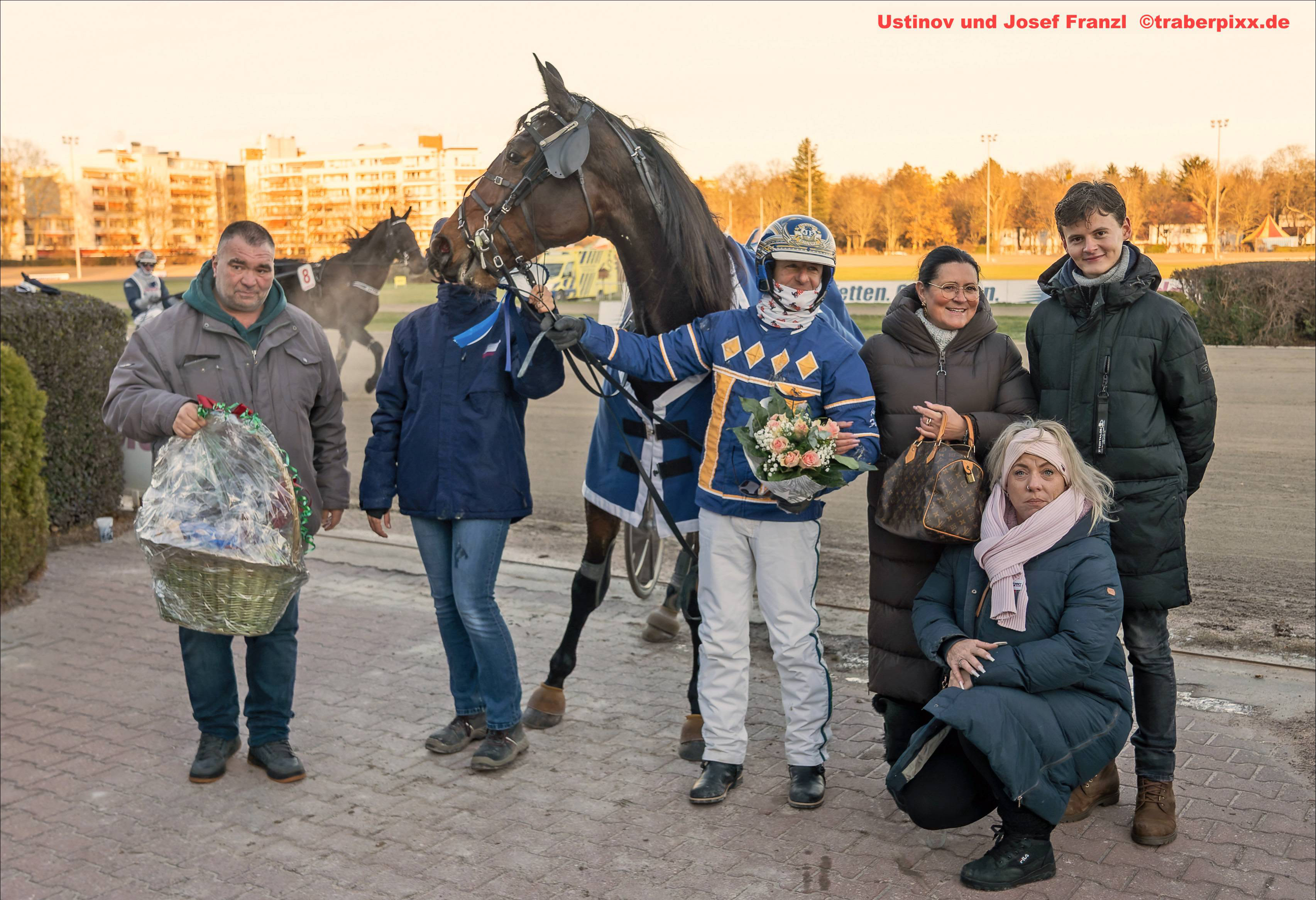 Lange sah es tatsächlich auch danach aus. Denn obwohl es in der Startphase einigen gegnerischen Druck gab, wollte Andreas Gläser mit der für 3,1-faches Geld gehandelten Stute partout nicht die von der Position eins aus eroberte Führung aus der Hand geben. Josef Franzl blieb mit dem bei 1,7-fachen Odds notierten Ustinov daher nichts anderes übrig, als mit der Außenspur Vorlieb zu nehmen. Im Schlussbogen lösten sich beide Duellanten etwas von den weiteren Teilnehmern und es entwickelte sich ein heißer Fight. Erst kurz vor dem Pfosten schob sich Ustinov in 13,1/1.900m doch noch an Komino Blue Lagoon vorbei. Beide Pferde verbesserten ihre Rekordmarken zugleich erheblich. Und obwohl der Erfolg für Ustinov mit einer Halslänge Vorsprung relativ knapp ausfiel, war die Manier dennoch sehr souverän und der Wallach steht ebenso wie die in allen Ehren unterlegene Konkurrentin vor einer tollen Zukunft. Sogar 20.000 Euro Preisgeld gab es im siebenten Lauf der Gold-Serie zu verdienen. Und so sehr sich Josef Franzl bereits über den Sieg von Ustinov gefreut hatte, so stolz durfte er nun gemeinsam mit Rolf Dürr – dem Besitzer des Pferdes – auf Tyron Hill sein. Denn der Hengst beherrschte das hochkarätig besetzte Rennen Start-Ziel und wies auf den ersten Metern nicht nur die vehemente Attacke des letztlich drittplatzierten Purple Rain (Robbin Bot) ab, sondern besaß auch noch die Kraft, sich dem Schlussangriff von Sangria Pellini (Michael Nimczyk) zu widersetzen. Unter Rekordverbesserung auf 12,8/1.900m verwies Tyron Hill die speedstarke Stute auf Rang zwei. Das war zweifellos ein kleines Wunder – denn nach einer 2024 erlittenen schweren Beinverletzung war Tyron Hills Rennlaufbahn eigentlich schon beendet. Doch nach einer erfolgreich verlaufenen Operation kehrte Tyron Hill nun dank seines eisernen Willens auf die Erfolgsbühne zurück. Keine Frage: Vor diesem Hengst muss man den Hut ziehen! Die Veranstaltung begann mit einem Rennen der gewinnarmen Klasse. Für Trouble und Michael Nimczyk entwickelte sich alles zu einer reinen Pflichtaufgabe. Denn nach einem ruhigen Start flog die dreijährige Stute geradezu spielerisch an ihren Konkurrenten vorbei. Die Braune gewann in 16,6/1.900m mit sechs Längen Vorsprung. Der Goldhelm punktete auch mit Andrala, die zügig nach vorne ging und ihre Gegner auf der Zielgeraden in 14,5/1.900m regelrecht verlor. Sogar mit Weile-Vorsprung stürmten Josef Franzl und Henri de Jautais zum Sieg. Das Gespann hatte in einem Trotteur Francais sofort die Führung übernommen und ließ dem 20 Meter schlechter gestellten Gouritch (Thomas Reber) in 15,8/2.020m nicht den Hauch einer Chance.