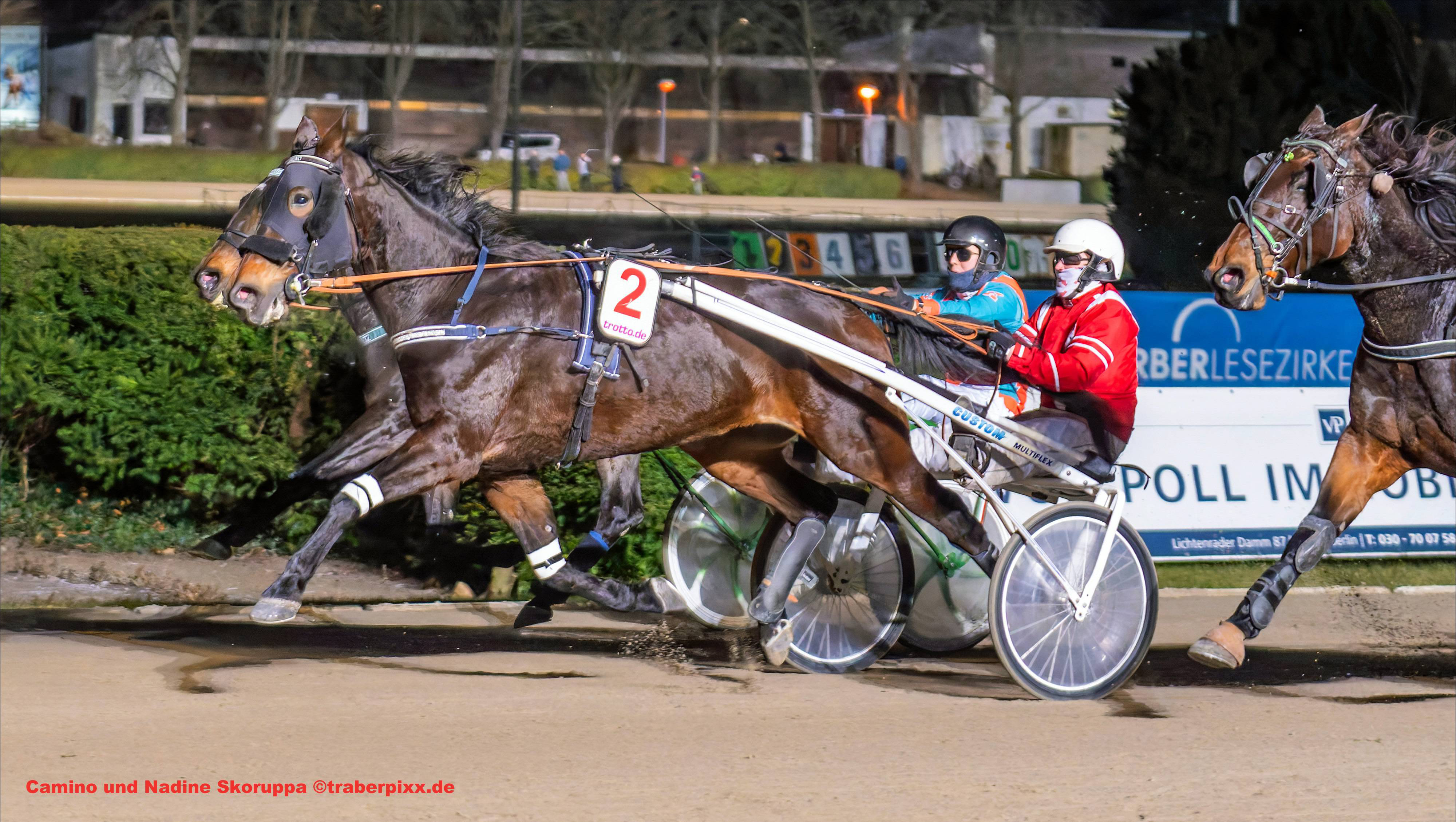 Neben der von Andrala gewonnenen Prüfung waren noch zwei weitere Rennen mit der TippelTom-Talentförderung verknüpft. Im ersten dieser beiden sah zunächst alles nach einem Erfolg von Eagle Spav und Lasse Grundhöfer aus, die vor den Tribünen an Thai Soho und Nadine Skoruppa vorbei nach vorne vorgestoßen waren und die Ziellinie als Erste überquerten. Doch die Rennleitung nahm die letzten 400 Meter noch einmal genau unter die Lupe und stellte eine erhebliche Fahrspurveränderung des vermeintlichen Siegers fest. Da der Abstand zu Thai Soho am Zielpfosten sehr knapp war, wurde Eagle Spav hinter die Gegnerin auf den zweiten Rang zurückgesetzt. Damit war für Nadine Skoruppa aber längst nicht alles vorbei – denn mit dem 52,5-Riesenaußenseiter Camino gelang der sympathischen Sportlerin ein geradezu sensationeller weiterer Coup. Nach einem geschonten Verlauf als zweites Pferd innen war der Sechsjährige in 15,9/1.900m genau rechtzeitig zur Stelle und bescherte seiner Fahrerin sowie dem einzigen Gewinner der V7+ Wette (Quote 50.000 : 1) pure Glücksgefühle. Wenn schon denn schon – das muss sich Marlene Matzky mit Heavenly Dreamgirl gedacht haben. Denn die Amazone ließ sich im Trabreiten absolut nicht lumpen, ergriff sofort die Initiative und gewann mit ihrer Traumpartnerin in 15,2/1.900m mit zweieinhalb Längen Vorsprung Start-Ziel. Etwas länger ließ sich Dennis Spangenberg mit Alex A’lir Zeit. Aus gutem Grund, denn der Wallach hatte sich schon manche gute Chance durch Unsicherheiten zunichte gemacht. Doch diesmal verkniff sich der Dreijährige, der sich nach Spangenbergs Meinung auf einem sehr guten Weg befindet, alle Eskapaden und gab auf der Schlussrunde klar den Ton an. In 16,3/1.900m blieb der Braune mit einer Länge vor Open Minded (Carsten Milek), die noch einen schönen Schlussspurt hinlegte. Gesamtumsatz: 84.596,47 Euro. Bahnumsatz: 23.999,90 Euro. Außenumsatz 60.596,57 Euro. Unser Terminhinweis: Die nächste Mariendorfer Veranstaltung findet am Sonntag, dem 7. Dezember statt. Beginn ist um 12.30 Uhr. Im sportlichen Mittelpunkt stehen der achte Lauf der Gold-Serie, der Winter-Pokal der Amateure sowie das Dreijährigen-Rennen um insgesamt 43.000 Euro Preisgeld. Die Starterangabe, die Sie auch online auf www.rennbahn-berlin.de vornehmen können, ist am Montag, dem 1. Dezember. Sie erreichen das Mariendorfer Rennsekretariat unter der Rufnummer 030-7401229 bzw. per Mail an starterangabe@rennbahn-berlin.de. Bitte vergessen Sie nicht die Angabe des Hufbeschlags!