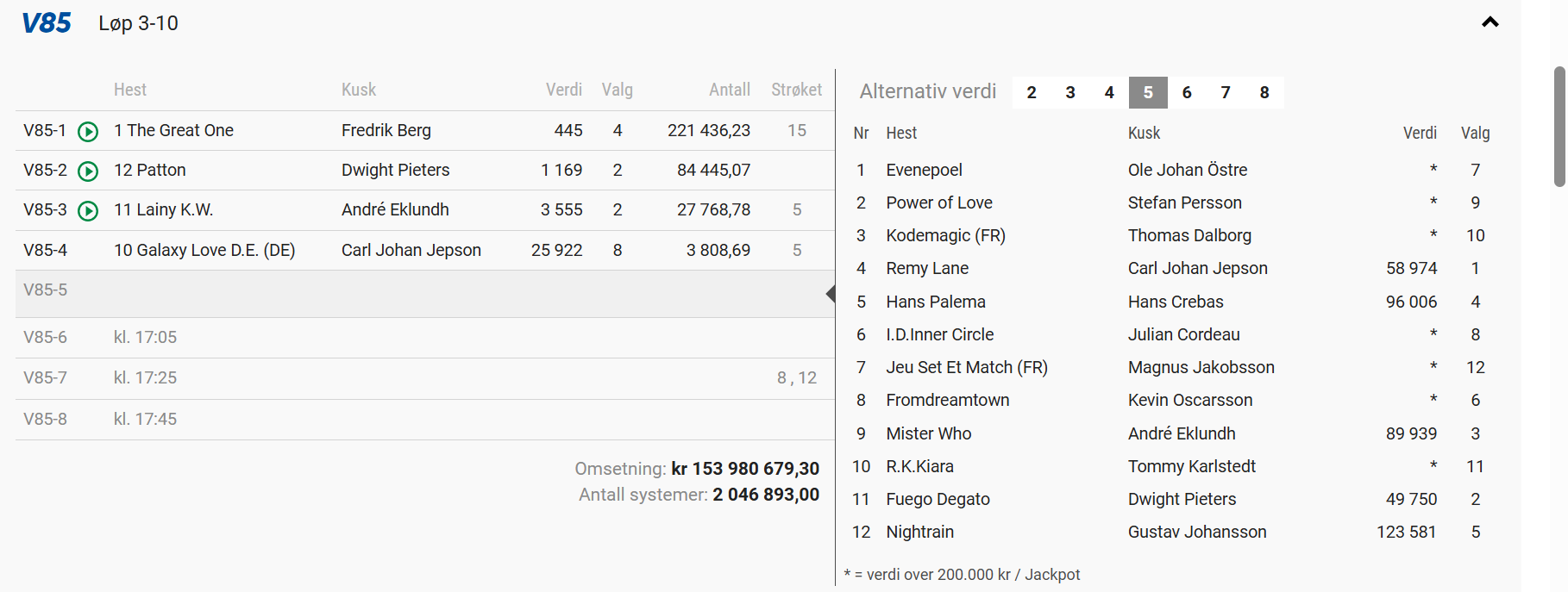nach v85-5 ist der 8er ca.(!) 150K wert.... und es kommen noch 3 Rennen... Pari werden kann man nicht, aber sportlich betrachtet gut rauskommen geht noch.... 2026 geht es dann sowieso weiter! Besser, schöner und überhaupt....🤠 |