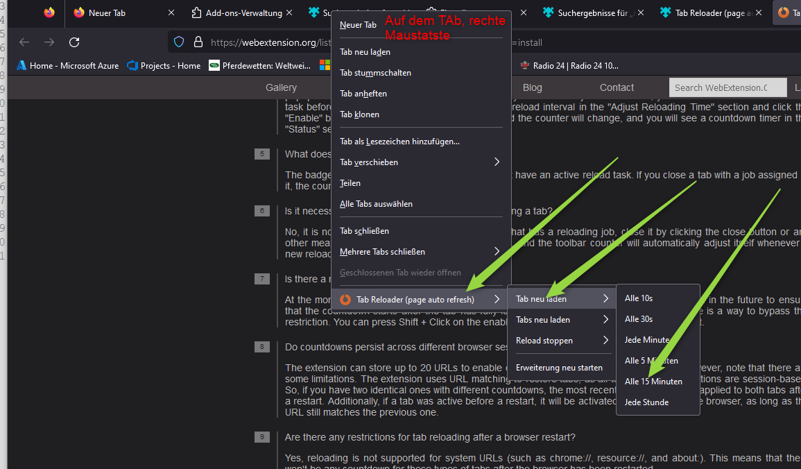 Naja, die Zwangstrennung beim Aufsuchen anderer Anbieter kannst du nicht vermeiden, aber mit dem Tab reloader wirst du wenigstens nie ausgeloggt, weil er das Aktualisieren für dich automatisch übernimmt... du kannst für jede Seite einen Zeitzyklus bestimmen... also zB beim Firefox oben in "Erweiterungen" "Tab reloader" suchen, aktivieren und dann zB bei Seiten von Wettanbietern 29 Minuten einstellen...weil die meisten nach 30 Min ausloggen... |