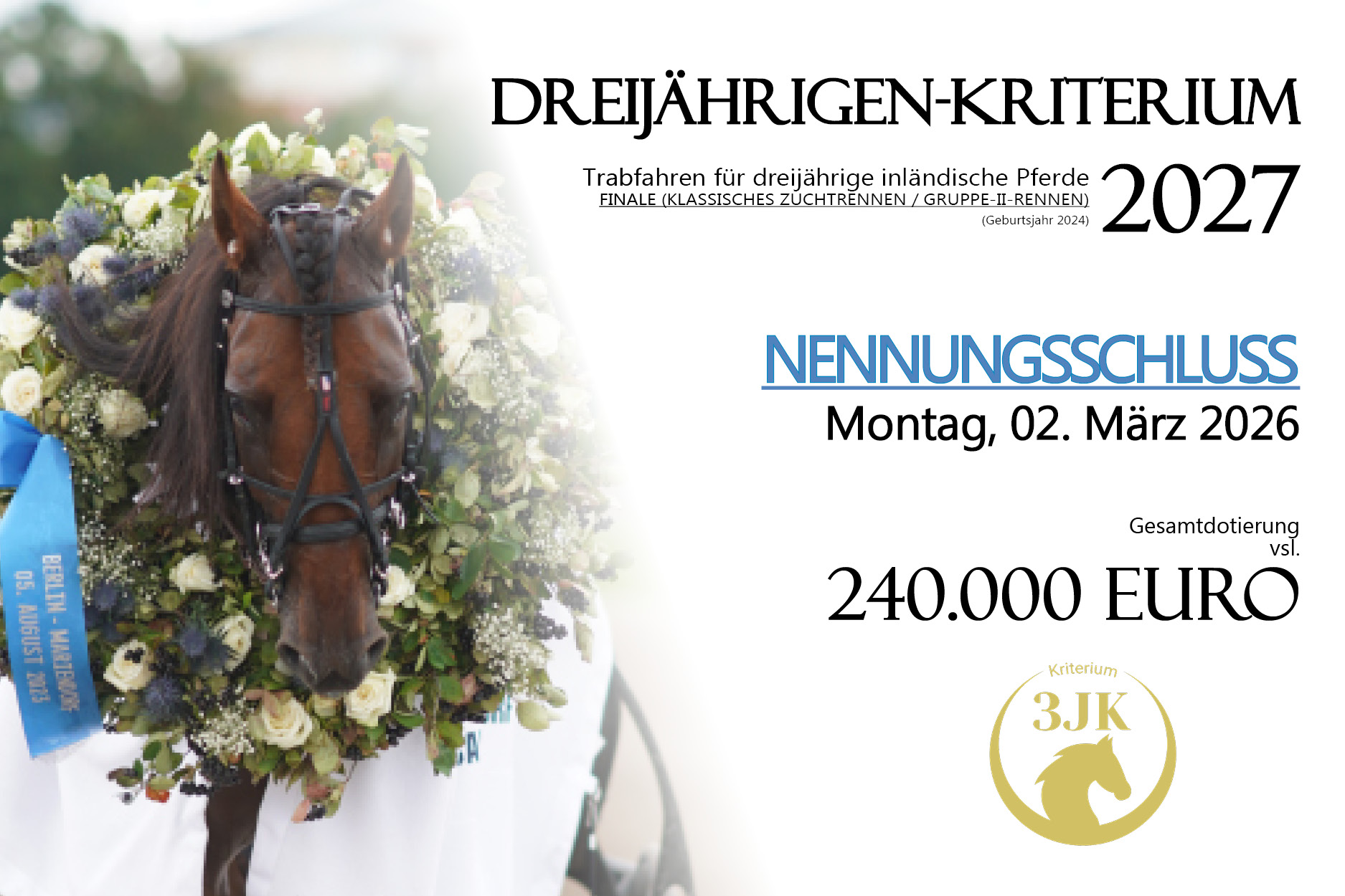 Dankeschön. Habe bei gehobene Rennen nachgesehen....bin aber nicht darauf gekommen, dass die Ausschreibung dann unter dem Berliner Trabrennverein steht. Dachte das ist eine übergreifende Ausschreibung, aber gut. Wieviele Nennungen erhofft man sich? Eigentlich schade , dass die Überschüsse aus den PMU Prozenten wieder mal nicht dem grundlegenden und so wichtigen "Alltagssport" zur Verfügung steht. Die Rennvereine bräuchten gerade für diesen Sport so dringend Unterstützung. Na ja..... |