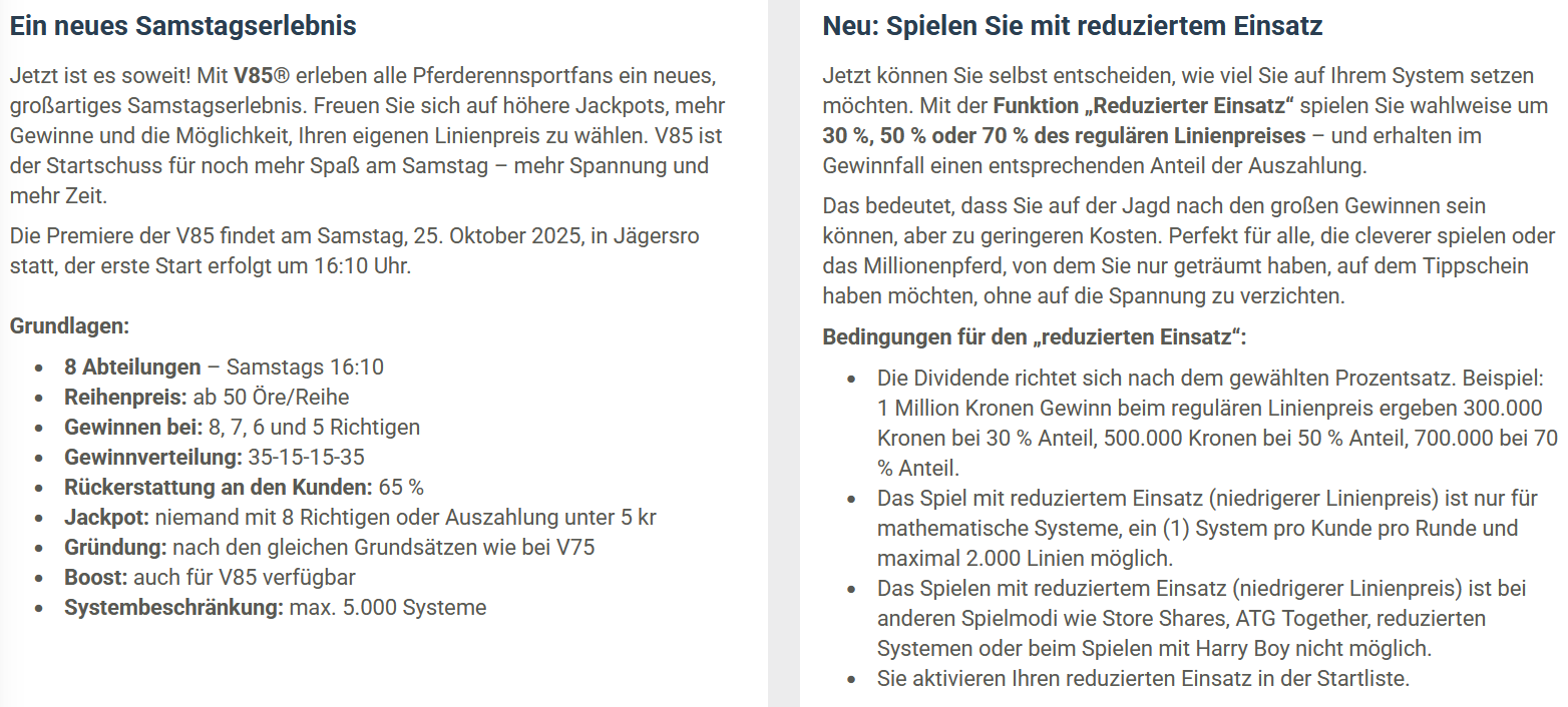 Vorschau Jägersro V85, Samstag 25.10.2025