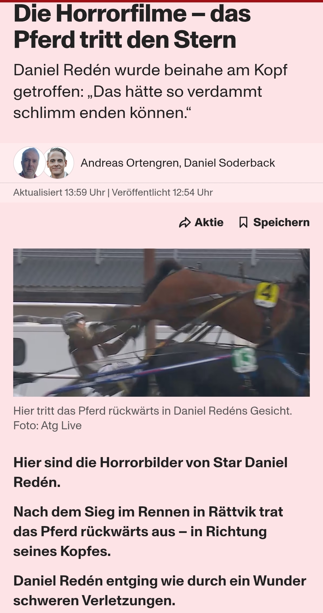 im Glück nichts passiert (hat Ihm am Schenkel getroffen, aber den Kopf knapp verfehlt)... D. Reden ist gleich im nächsten Rennen wieder gefahren, eines später hat er dann sogar gewonnen... Aber das war wirklich knapp und gefährlich!🤠 |