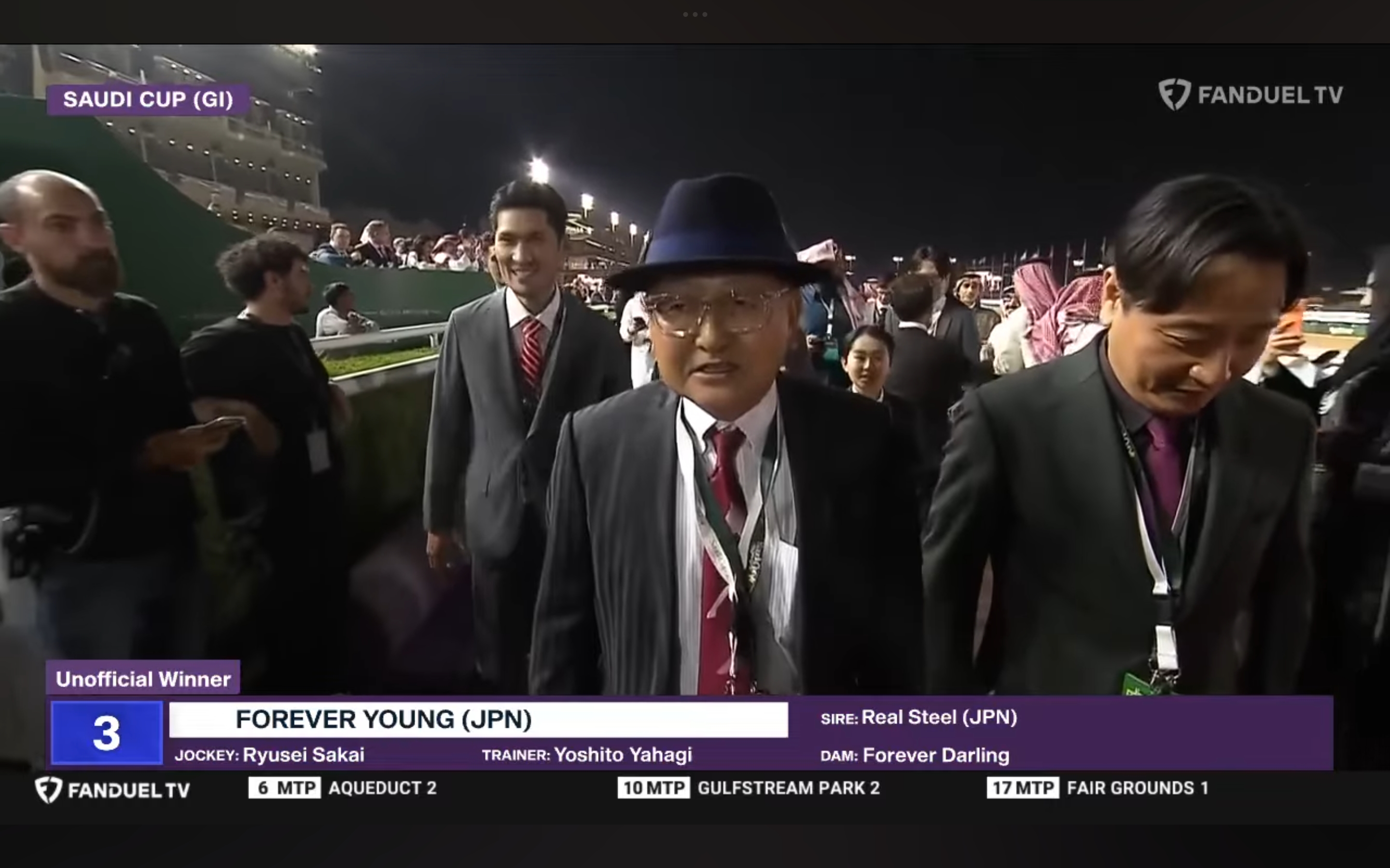 Gestrige Derbysieger Al Haram stand World Pool 7,8. FK 9,5 aufwärts. Gestern mein Pferd des Tages, letzten Start 200m vorm Ziel bei den Pferden...im Ziel ü.12L. Mit dem gleichen Jock wie gestern gegen Soumillon, Barcalona und J. Rosario. Link zum Clip. Forever Young betrat 2024 im gleichen Rennen siegreich die intern. Bühne und qualifizierte sich damit fürs Kentucky Derby. Dieser Al Haram gefällt mir auch verdammt gut. Schlecht abgesprungen, hinten.. grün weiß,grüne Kappe https://youtu.be/au__22IMyFE?si=g0gHDJbioRHIWmwV Gestern.... https://youtu.be/3A3AxnraAgM?si=mgFREvCcKqxgIe4S