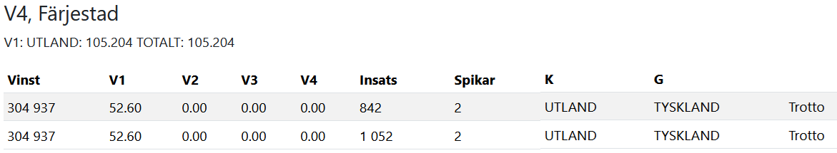 Heute waren es dann 4 der insgesamt 6 Treffer (1 aus Norwegen wo ich nicht weiß, ob die was Vergleichbares haben, aber Einsatz 166Skr mit 3 Bänken...), die ein Harry Boy waren. Ist ja alles kein Zufall und zeigt, wie spielerfeindlich die V85 ist. |