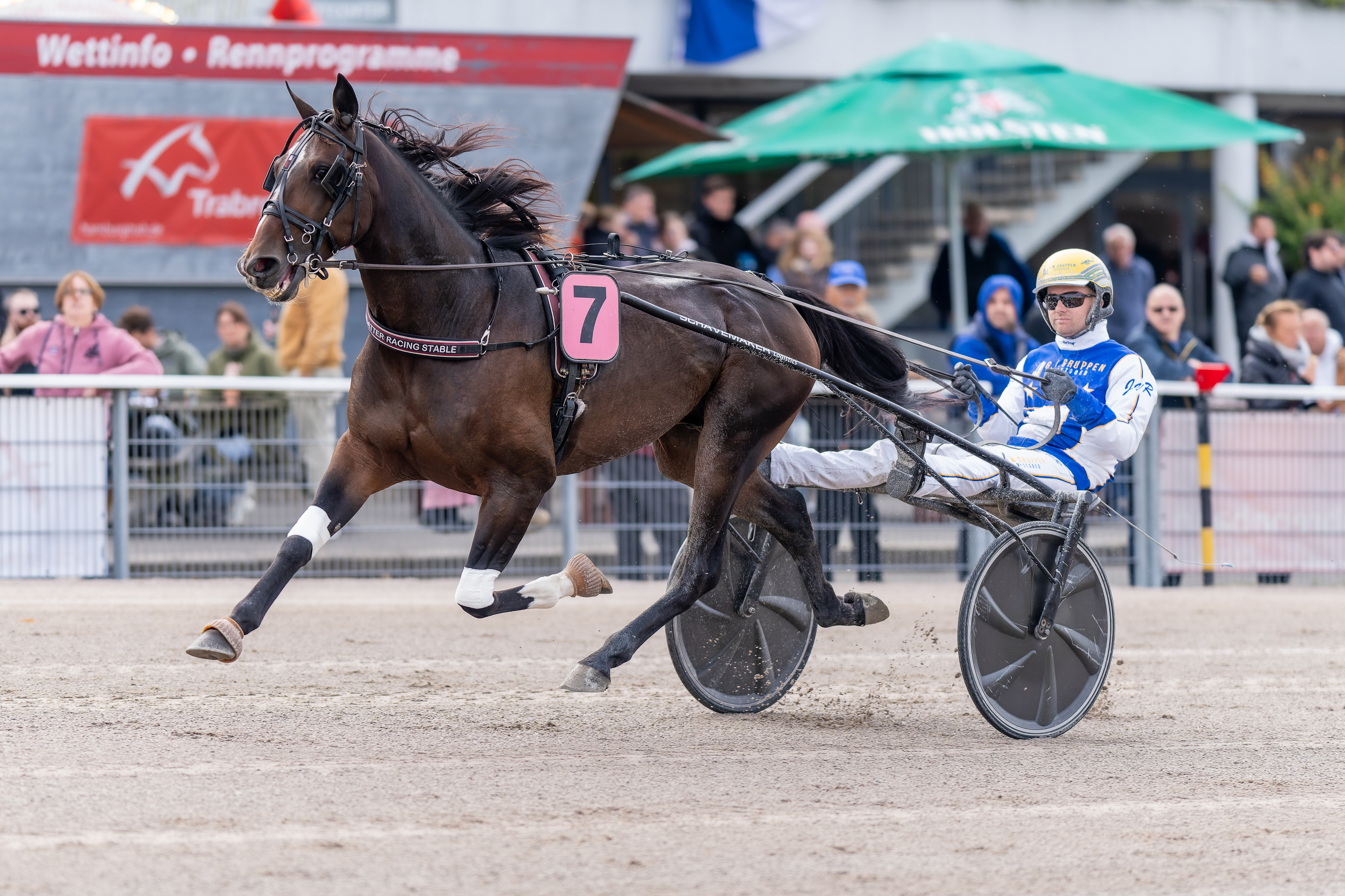 Daniel Wäjersten bestätigte den Wechsel bereits gegenüber Travnet: “ Er steht noch nicht auf meiner Trainingsliste, aber er befindet sich bereits auf meinem Hof. Es ist natürlich ein spannendes Pferd, das man da ins Training bekommt. Es sind Besitzer, für die ich bislang nicht trainiert habe, daher freut es mich sehr, dass sie auf mich setzen wollen. Ich habe ihn bislang noch nicht gesehen, da ich heute mit Chitchat in Vincennes am Start bin. “ Mit der Schimmelstute Riet Hazelaar, die mittlerweile in die Zucht gewechselt ist und dem hochklassigen Gio Cash hat Daniel Wäjersten bereits zwei außergewöhnliche deutsche Pferde unter seinen Fittichen (gehabt). Summermusic`night S hat eine aktuelle Gewinnsumme von 117.466 € und einen Rekord von 1.11,3 / 1.900 m. Der Tactical Landing-Sohn sollte mit seiner enormen Grundschnelligkeit auf den schwedischen Bahnen bestens aufgehoben sein und wird dort im kommenden Jahr als Fünfjähriger viele lukrative Aufgaben vorfinden. |