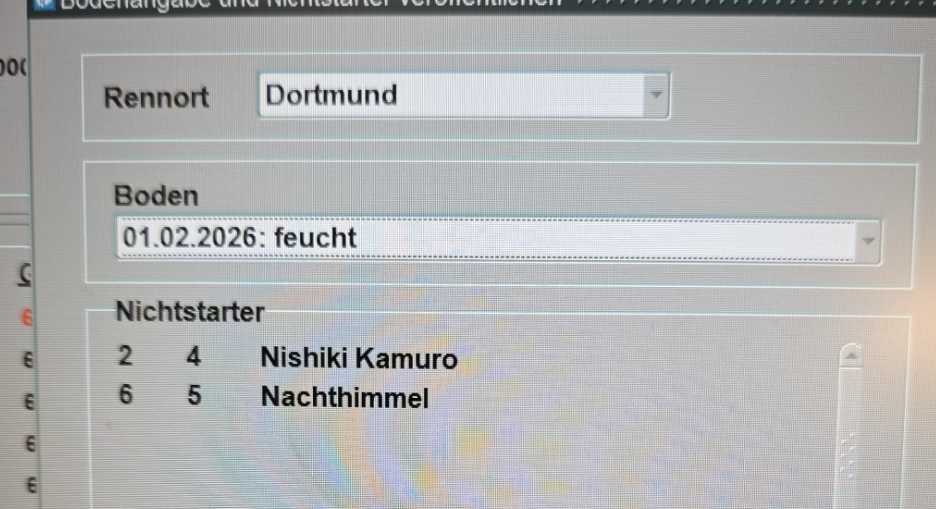 Oder der sechsjährige Mr Pablo, der zuletzt vier Rennen in Folge gewonnen hat, die letzten beiden in Dortmund. Sein Trainer Jan Korpas agiert in dieser Wintersaison in großer Form. Mit dem vierjährigen Aral hat Korpas noch ein zweites heißes Eisen im Feuer. Einigen Anhang dürfte auch die von Axel Kleinkorres vorbereite fünfjährige Stute Walencia finden. Sie siegte am letzten Renntag des vergangenen Jahres in Wambel. Frische Dortmund-Siegerin ist auch die sechsjährige Zeraphina aus dem Quartier von Bohumil Nedorostek. Sie war vor 14 Tagen erfolgreich.