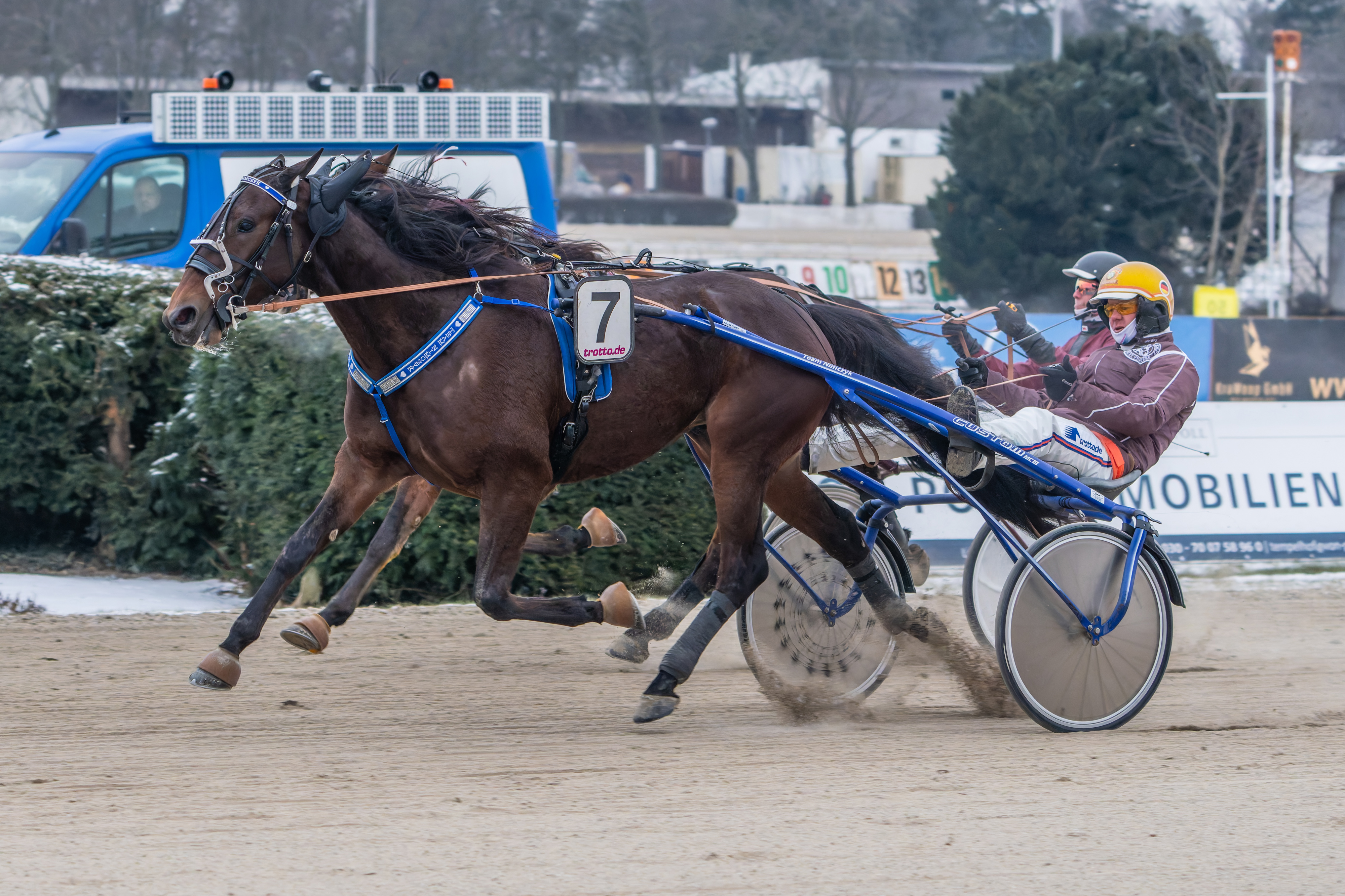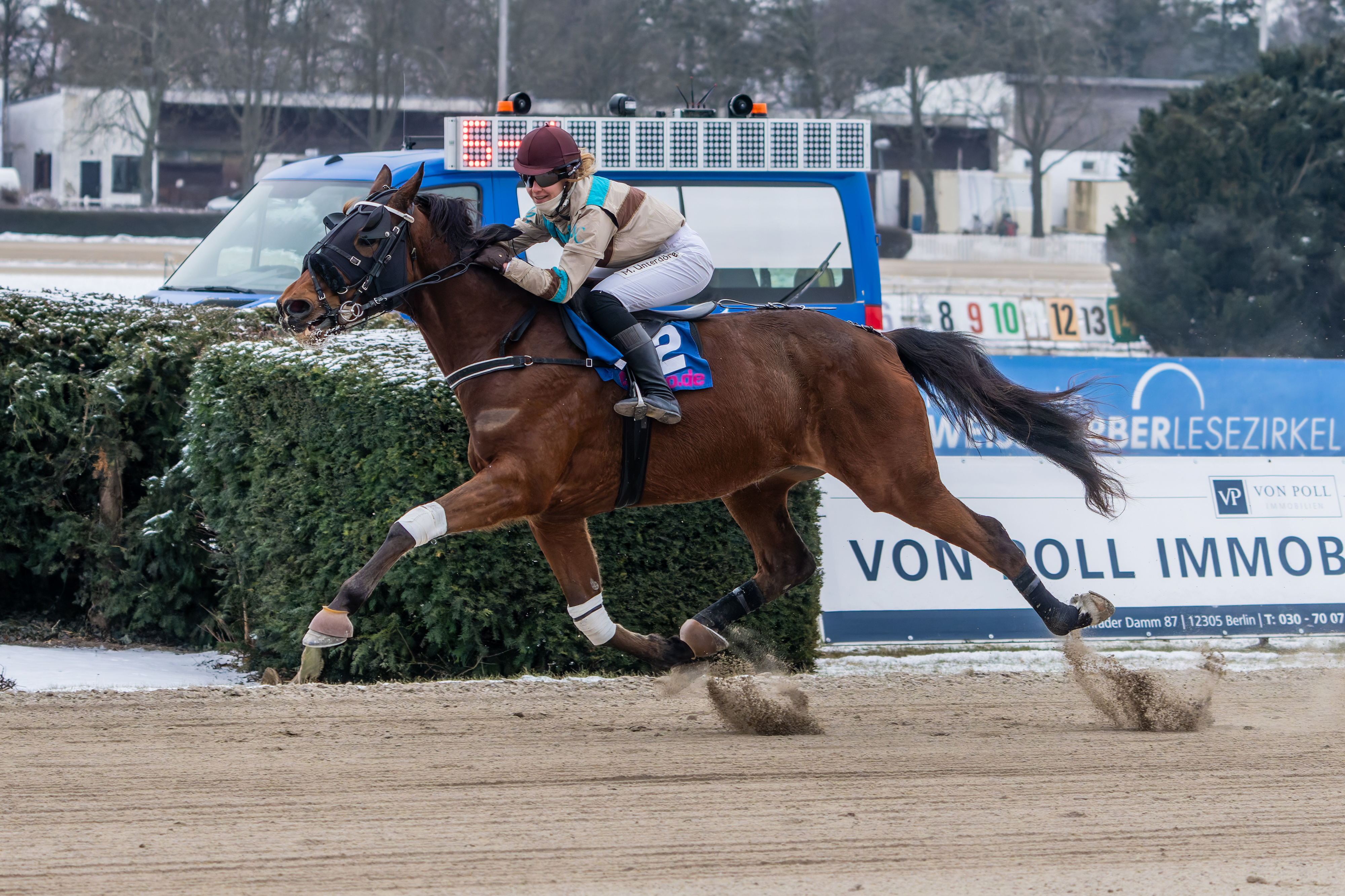 Der nächste Renntag in Mariendorf wird am Sonntag, den 15. Februar, stattfinden. Rennbeginn ist bereits um 10.30 Uhr. Dann stehen vier PMU-Prüfungen sowie die ersten Läufe der Newcomer- und Silber-Serie auf dem Programm. Starterangabe für diesen Renntag ist am Montag, den 09.02.2026. |