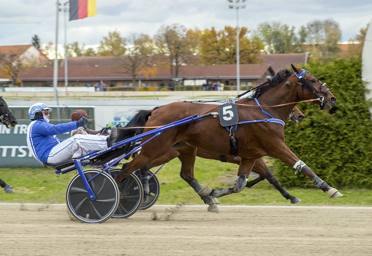 Der dritte Fahrer der doppelt Grund zur Freude hatte war Sepp Sparber. Zum Auftakt siegte der Mann in Neongelb mit Jimbo des Iles, nachdem der eigentlich schon siegreich scheinende In Drive With You (L. Rinkes) kurz vor der Linie mit einem dem Sieg vor der Nase in den Galopp verfiel. Der zweite volle Erfolg gelang dem gebürtigen Tiroler später am Nachmittag mit King des Ves. Der Wallach des Stalles Trotteur Royale siegte sicher gegen Ideolog und Glory CG und wurde seiner Favoritenrolle vollauf gerecht.