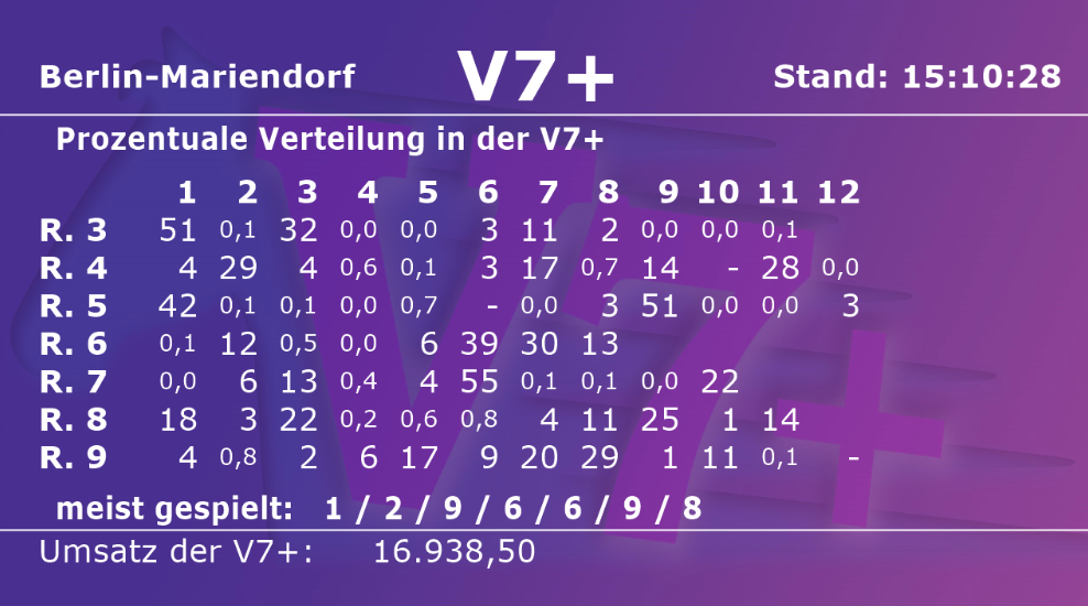 Dann soll es so sein. Also die Quote bei 61 Mille Umsatz, Daglfing dagegen 36 Mille bei vergleichbarem Jackpot, noch stärker abgekocht, als schon gedacht |