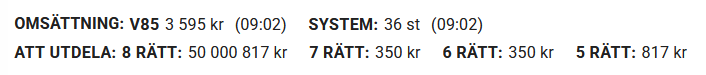 High Roller schreibt: Topf-Stand heute ist mehr als 80 Mio. Skr. Für Silvester sind (momentan/vorläufig???) erst 50 Mio. SKr in den 1. Rang gelegt worden: