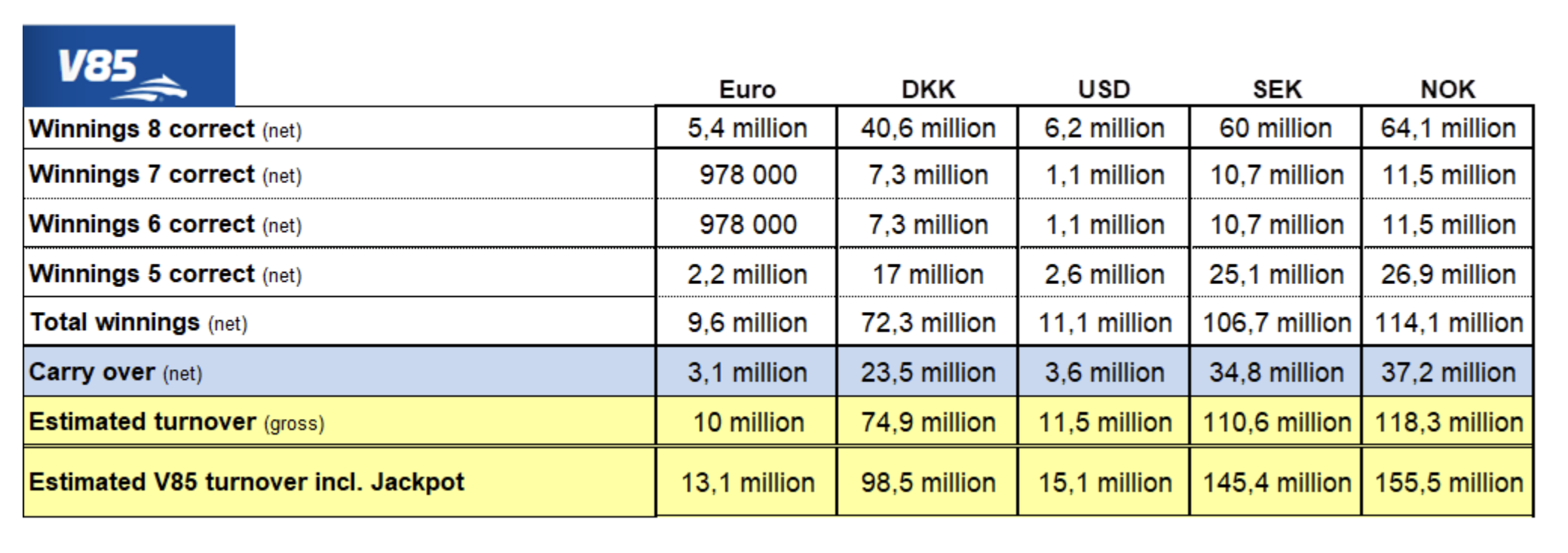 V85 Multi Jackpot November 29th, at Solvalla racetrack