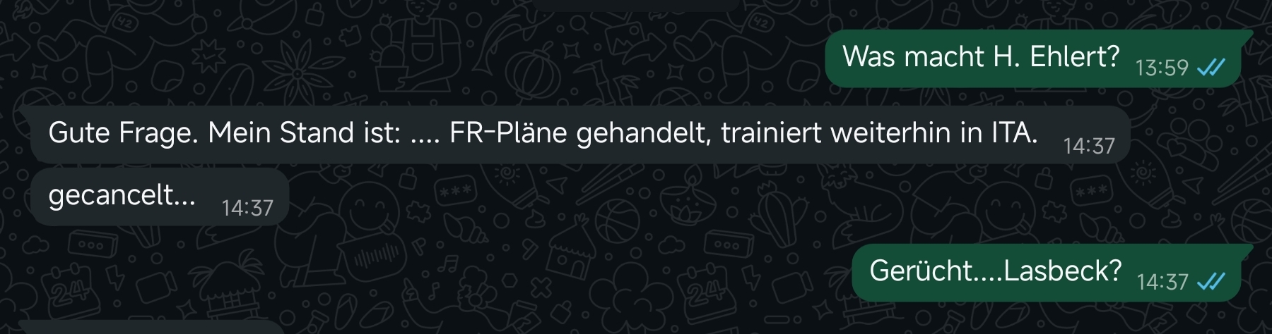 Was ist denn nun . Ehlert ja oder nein? Den passenden Fahrer hat er ja um die Ecke. Gerüchte seit Wochen ...aber .vl hab ich ja hier den passenden Thread verpasst weil hier nicht mehrr so aktiv. Der Französische Text 2 Tage alt. Der andere Wochen. |