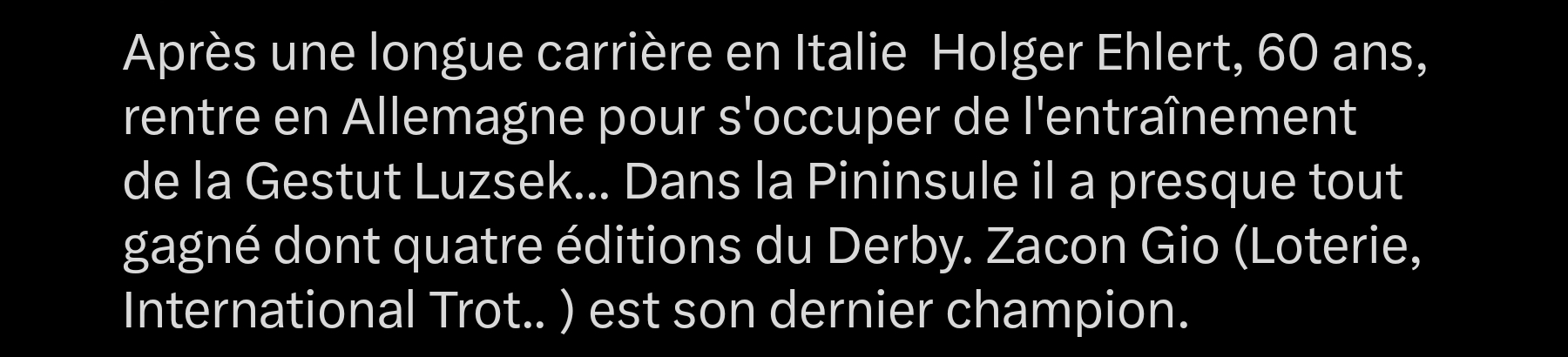 Leporello, unterschreibe ich auch so Gut wie Alles, nur das durch gemeinsame Standards (habe ich hier über Jahre auch immer gelesen) nur ein Wetter mehr zu Deutschlands Trabrennbahnen kommt, bezweifele ich arg. Selbst die gemeinsamen 15% Abzüge bei der Sieg- und Platzwette, die man ja hier immer wieder propagiert und verlangt hat, haben an den Umsätzen in Gelsenkirchen und Gladbach so gut wie nichts verbessert. Mariendorf nur wegen der Prämienlose. Werde mich aber deshalb nicht mit dir streiten.