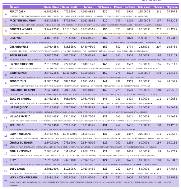die siegreichsten Deckhengste in F in 2025: Bei den Großvätern (pères de mères) führt Goetmals Wood vor Coktail Jet und Love You! |