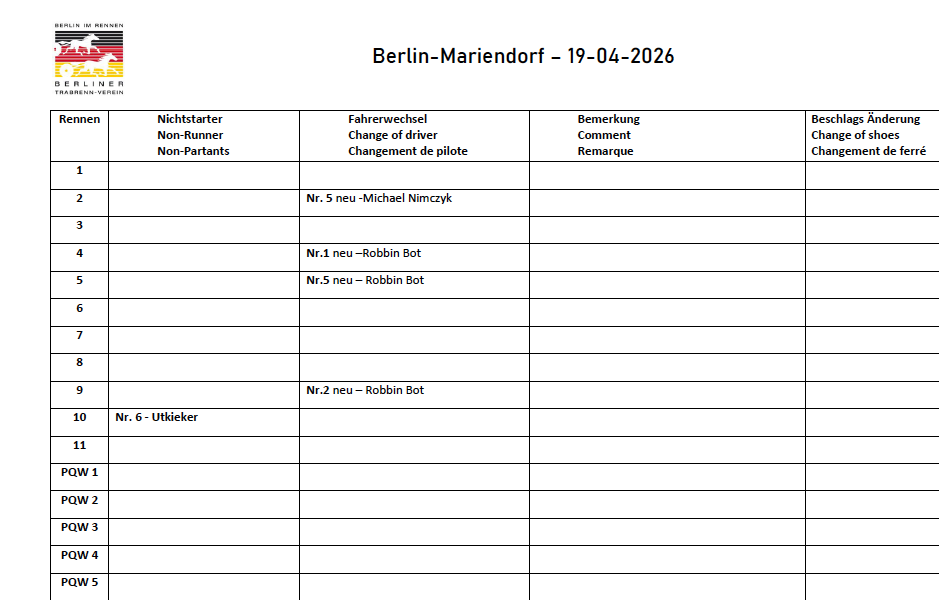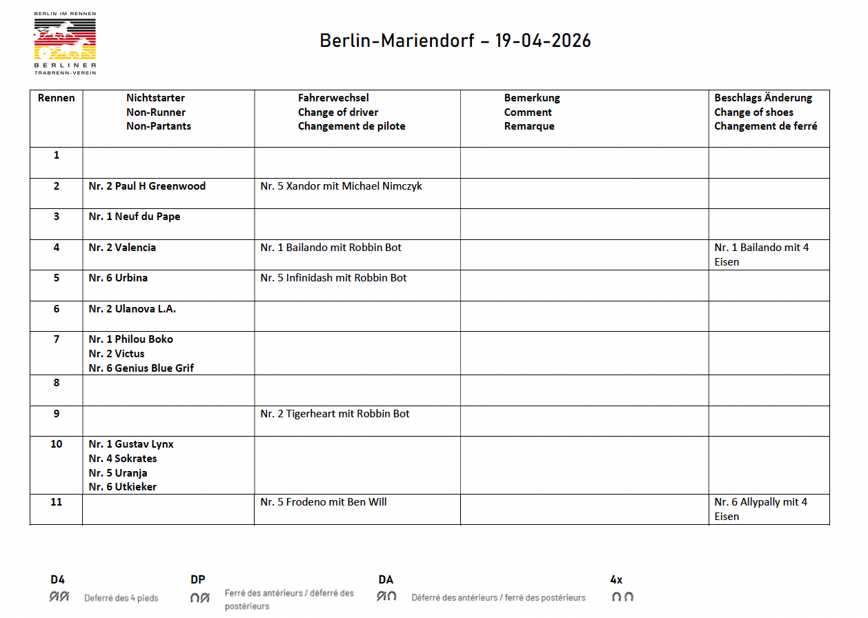 Vorschau Berlin-Mariendorf, Sonntag 19.04.2026