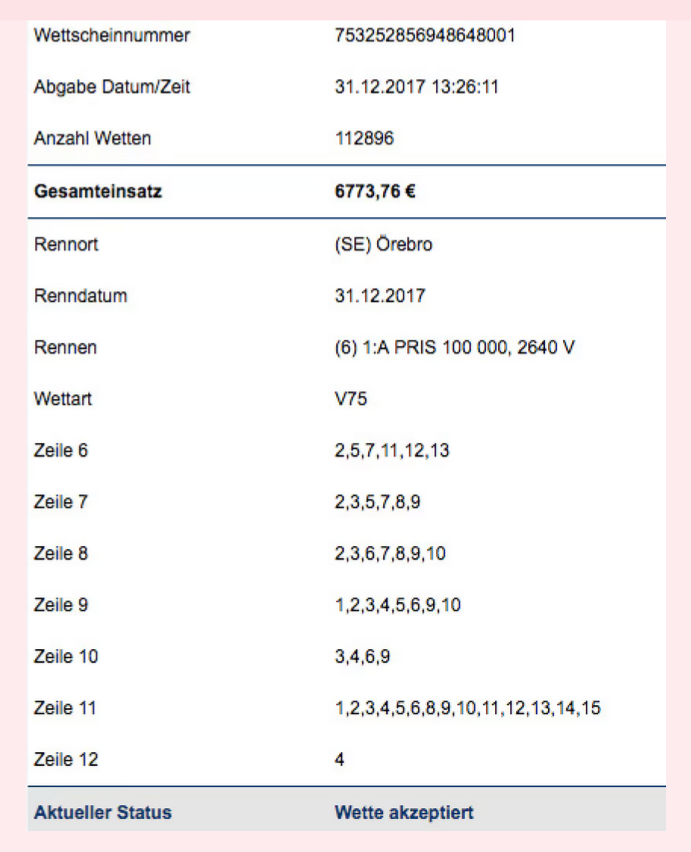 Der höchste Einsatz einer TG hier waren deutlich über 100.000E! War aber nur einmal wenn ich es recht in Erinnerung habe! Über 30.000 x mal! |