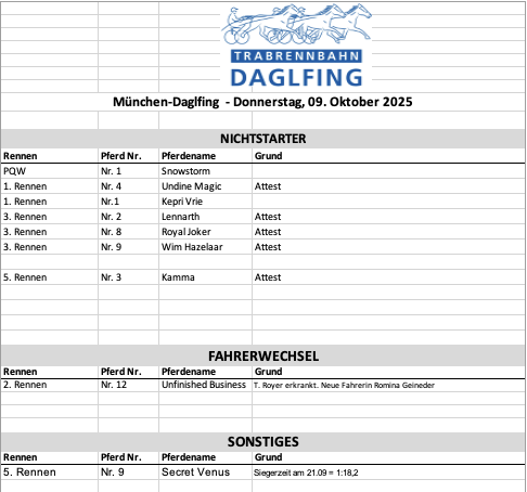 Vorschau München-Daglfing (PMU), Donnerstag 09.10.2025