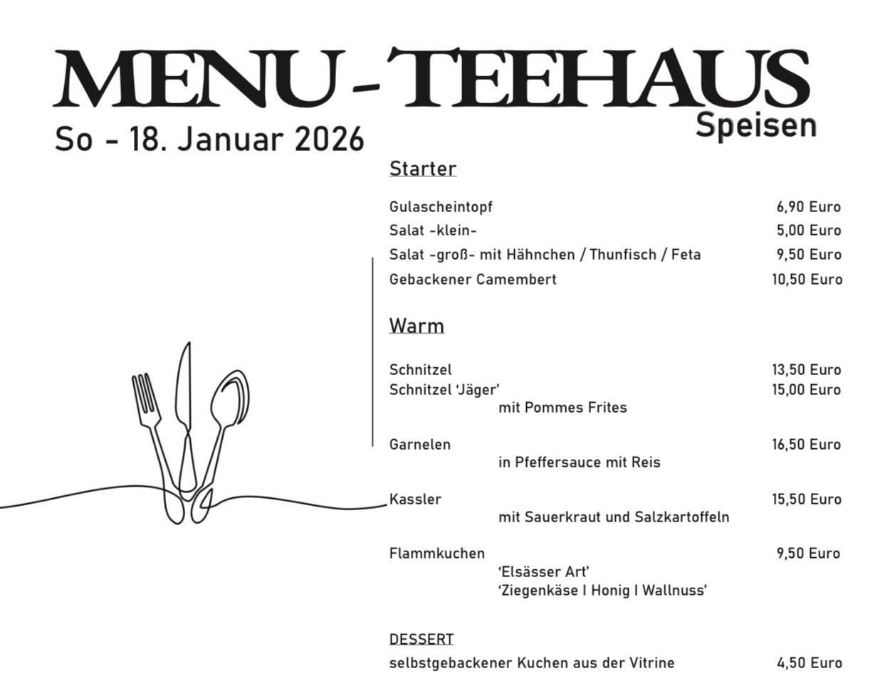 Grossartiges Angebot, offensichtlich am Gaumen des Gastes orientiert, Daumen hoch und ein gesundes 2026 für das gesamte Casino- Team. Ebenfalls ein feines Angebot im Teehaus - auch hier- ein gesundes Neues Jahr! |
