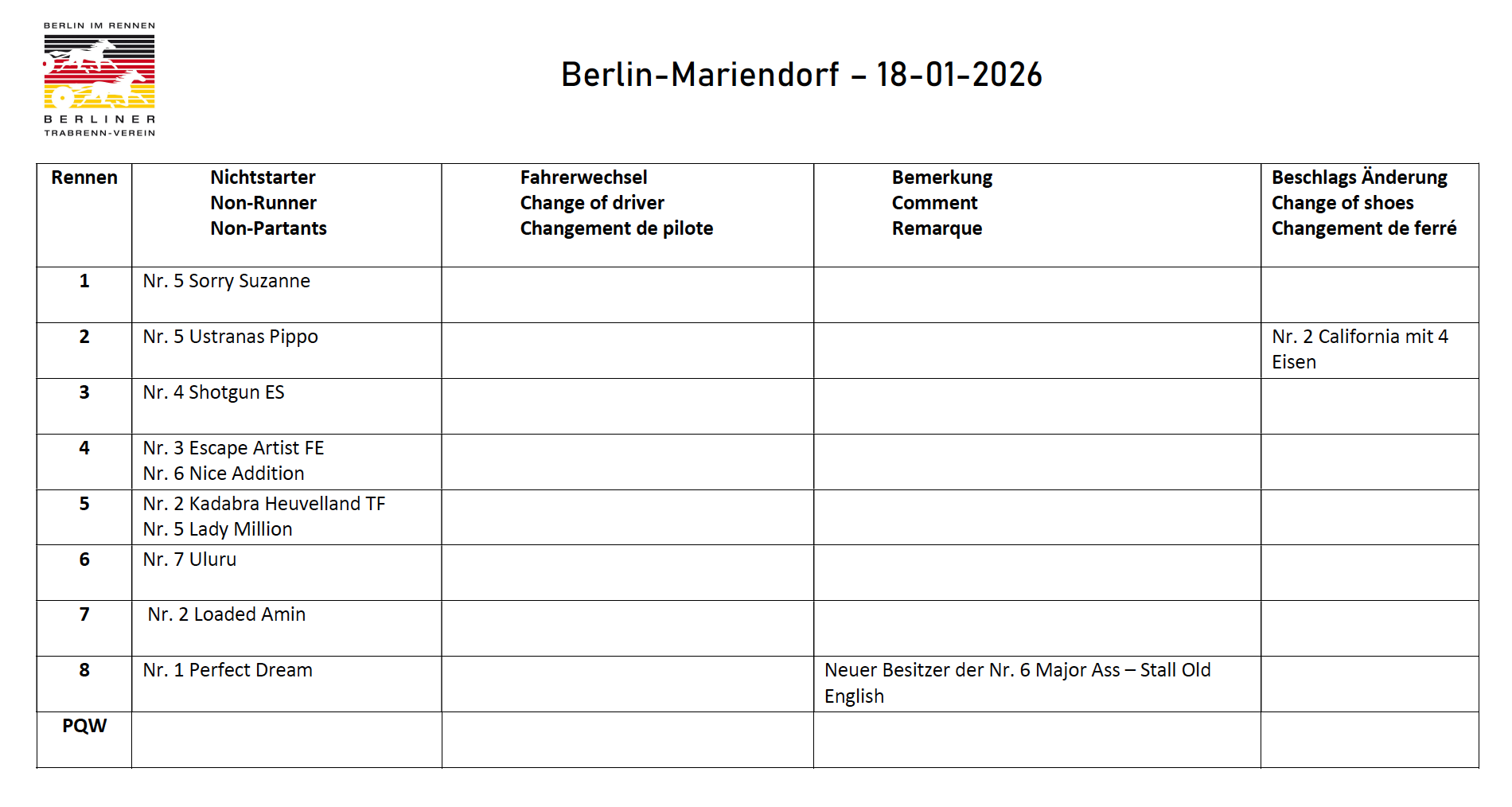 Vorschau Berlin-Mariendorf, Sonntag 18.01.2026